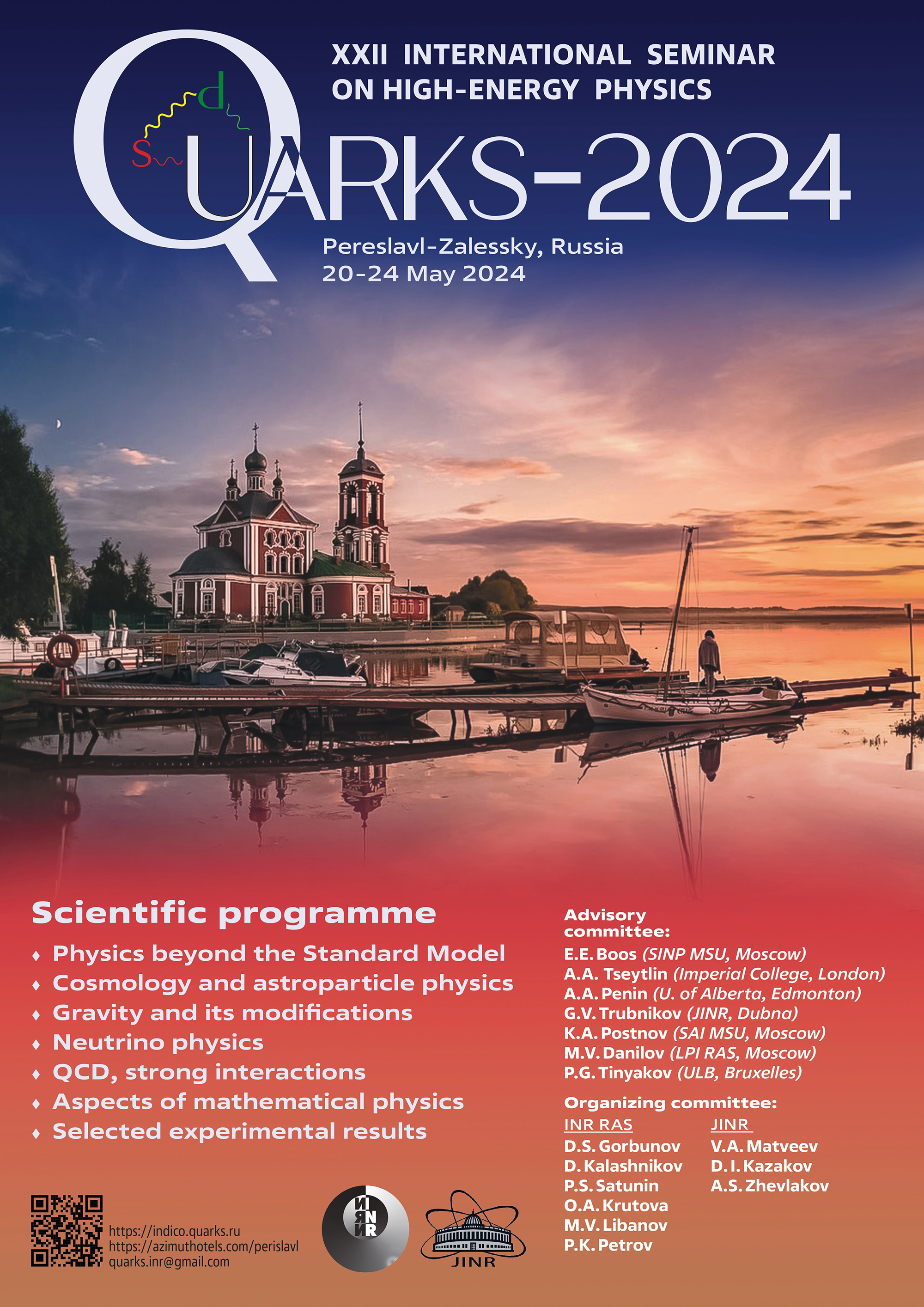 From 20 to 24 May, the 22nd International Quarks Seminar on High Energy Physics is taking place in person in Ivanisovo Village (Yaroslavl Region). The Joint Institute for Nuclear Research and the Institute for Nuclear Research of the Russian Academy of Sciences (INR RAS) are organizers of the event. More than 150 researchers from leading scientific centres of the Russian Federation are taking part in the Quarks-2024 Seminar.