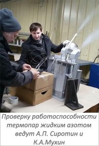 Испытание на герметичность проводят сотрудники ЛНФ В. А. Скуратов, Д. В. Зайцев и сотрудники НПО «Атом» В. И. Загулов и А. В. Анисовец