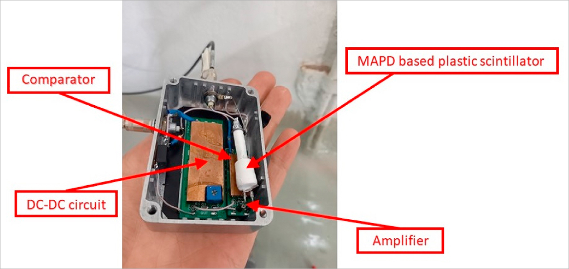 Международным коллективом ученых была спроектирована и разработана электроника нейтрон/гамма детектора. Размер пластикового сцинтиллятора был выбран равным 3.7×3.7×30 мм3 из-за чувствительной области MAPD.