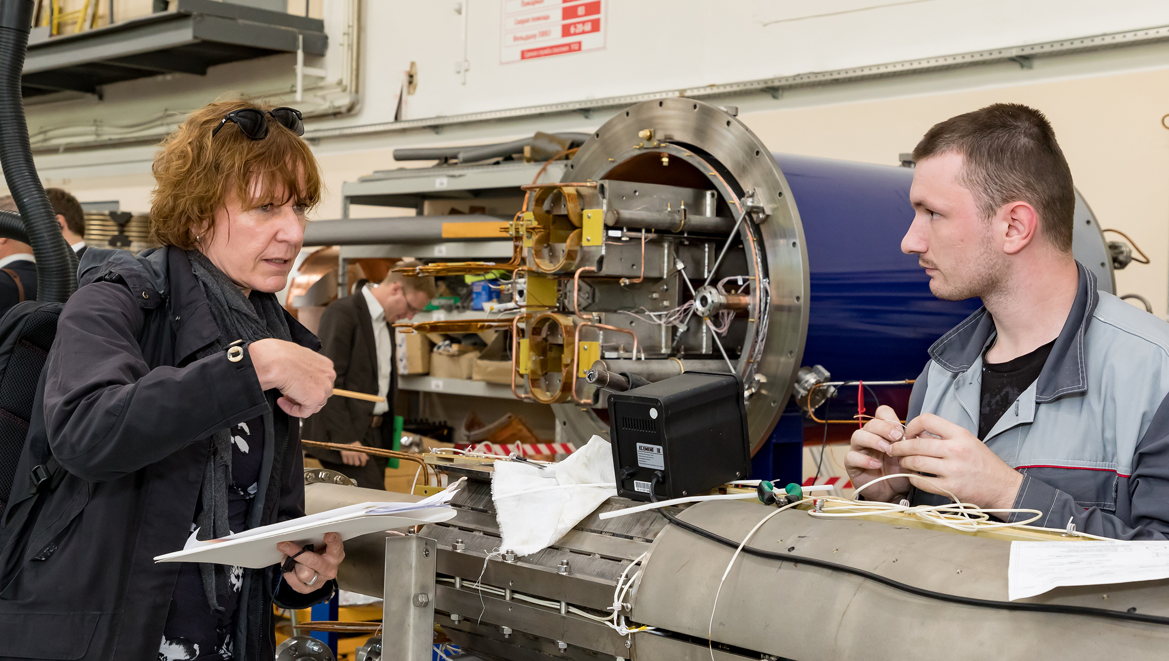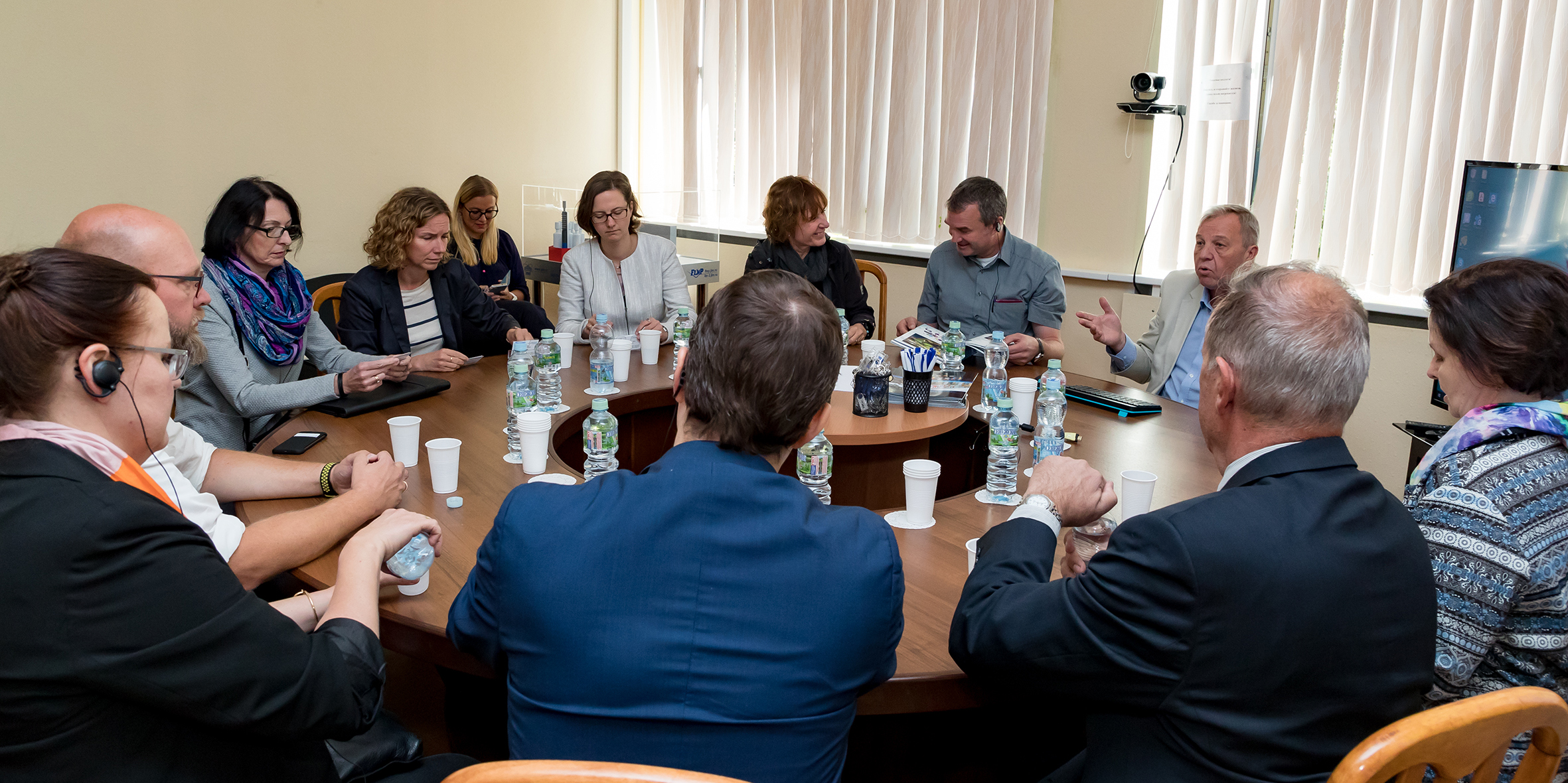 По окончании встречи г-жа Забине Карл дала комментарий для институтских медиа о целях визита немецкой делегации: «Нынешний визит проходил в рамках реализации Дорожной карты сотрудничества России и Германии в области образования, науки, научных исследований и инноваций, которая была подписана в декабре 2018 года. Одним из ключевых направлений Дорожной карты является развитие сотрудничества в области обучения молодых талантов, где нашей важнейшей задачей является подготовка технического персонала для работы в науке. Современные вызовы в науке поставили перед Германией задачу развития программ обучения персонала на базе крупных исследовательских установок. Немецкие исследовательские центры уже активно включились в реализацию этой задачи. И сейчас в рамках реализации упомянутой Дорожной картой у нас есть прекрасная возможность реализовать в новом контексте уже существующий многолетний опыт по подготовке профессиональных кадров. Мы надеемся, что в рамках дальнейших встреч с представителями ОИЯИ мы найдем способы эффективной реализации программы подготовки профессиональных кадров на базе Института, как объекта крупной исследовательской инфраструктуры. Это сотрудничество носит взаимовыгодный характер. Со своей стороны мы рассчитываем получить важный и ценный опыт для дальнейшей модернизации нашей образовательной программы. И здесь особое внимание должно быть уделено не столько высшему образованию, сколько подготовке технического персонала среднего звена. Сегодняшняя встреча была первым шагом по поиску взаимопонимания по вопросам реализации этих задач. Надеемся, что этот аспект сотрудничества окажется столь же интересным и для вашей организации».