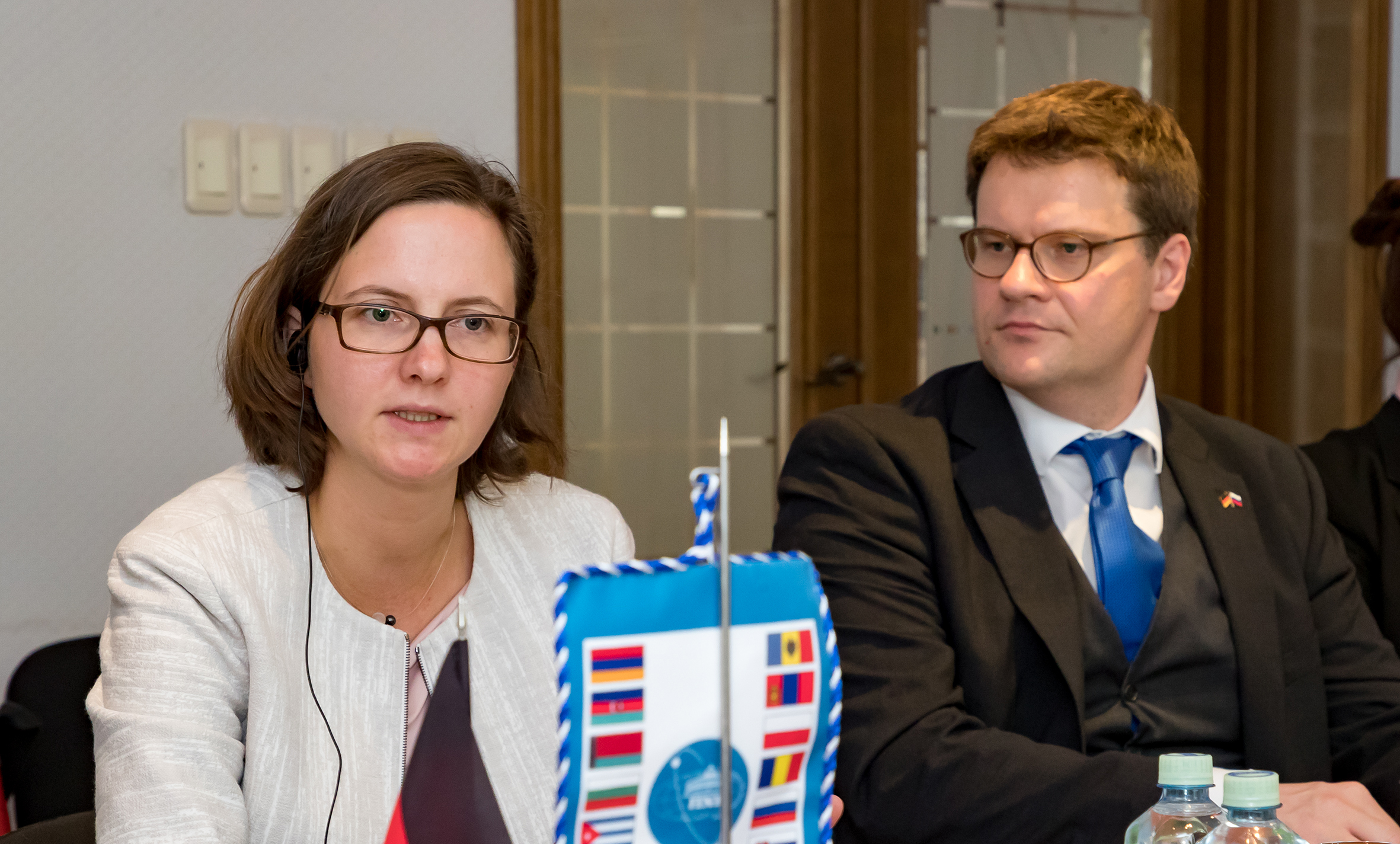 В состав делегации вошли представители Федерального министерства образования и научных исследований Германии – Забине Карл, референт по вопросам образования в странах ЕС и международного сотрудничества в образовании, и Аннетт Шварц, референт по вопросам сотрудничества со странами Восточной Европы, Россией и Центральной Азией. Делегацию сопровождали Ежи Бохданович, руководитель отдела труда, социальных дел и здравоохранения Посольства Германии в Москве и профессор Екатерина Есенина, ведущий научный сотрудник Федерального института развития образования (ФИРО РАНХиГС, Москва). В состав немецкой делегации также вошли представители Федерального института профессионального образования, Германского центра авиации и космонавтики, Немецкого культурного центра им. Гете в Москве, исследовательских центров в Юлихе и Дармштадте.