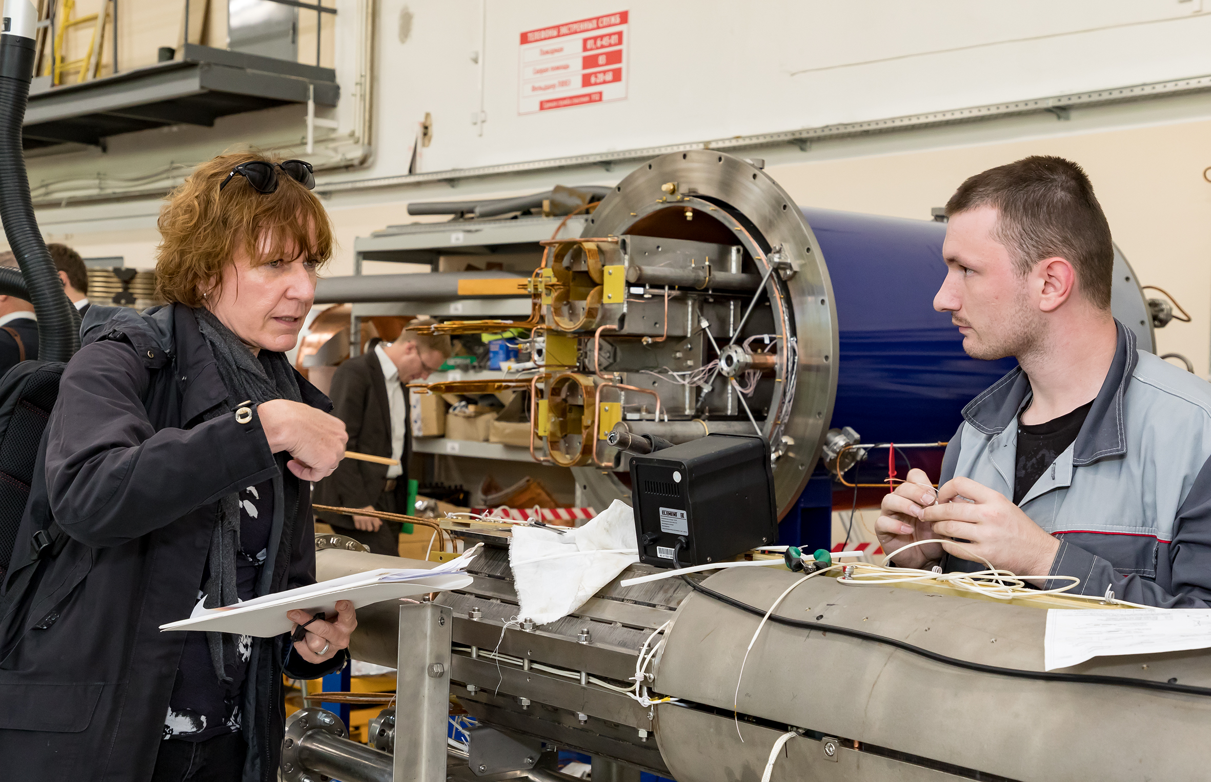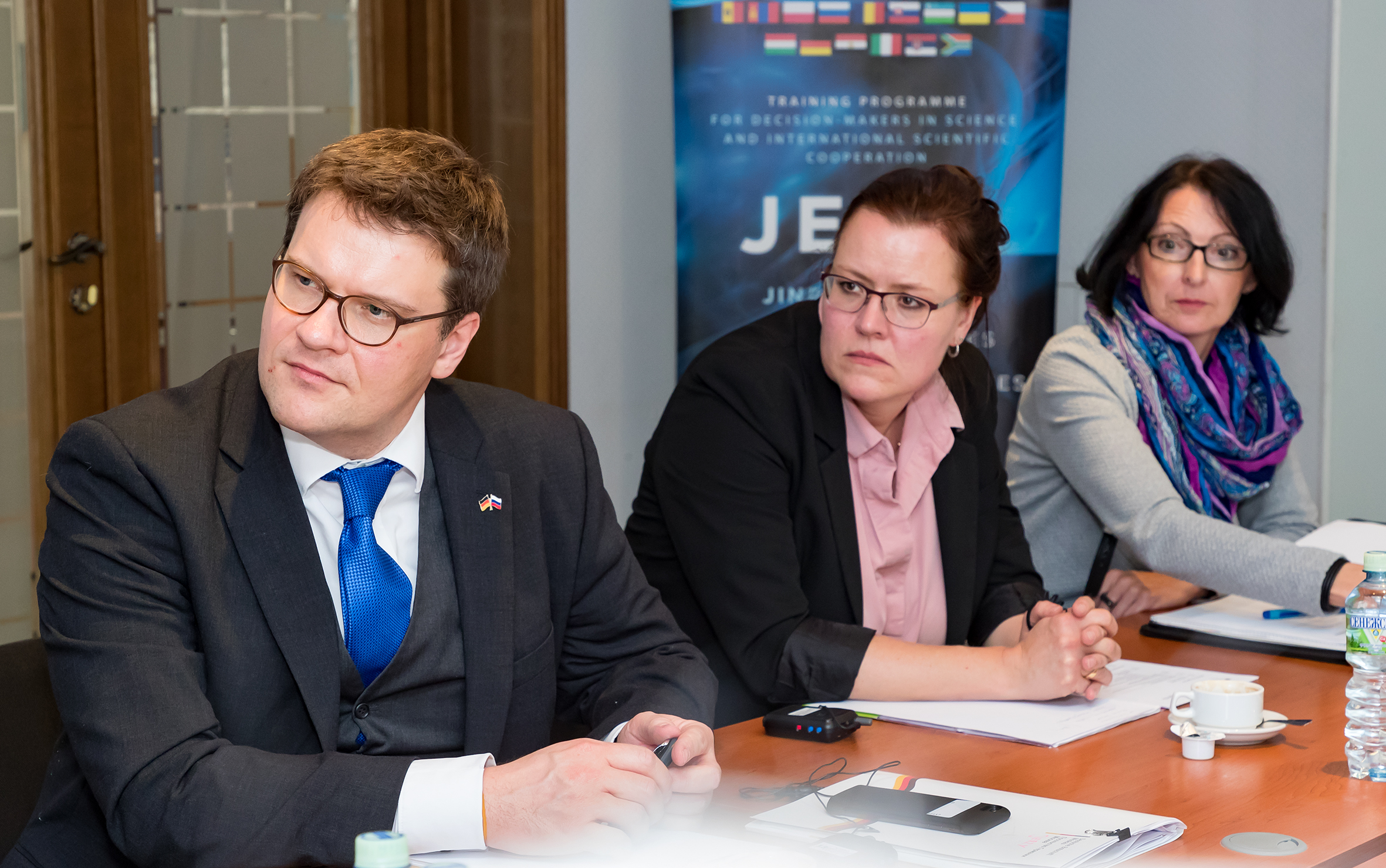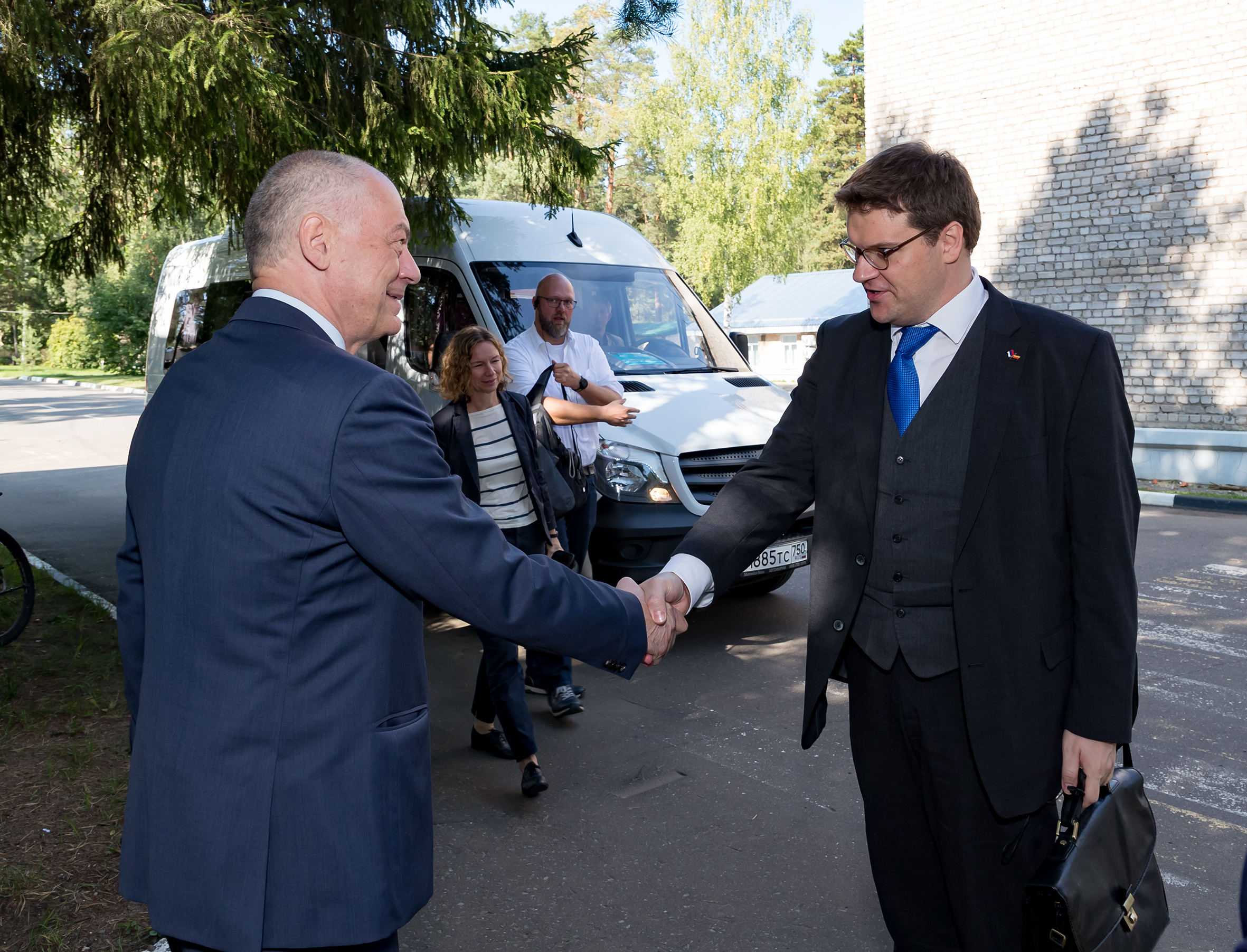 По окончании встречи г-жа Забине Карл дала комментарий для институтских медиа о целях визита немецкой делегации: «Нынешний визит проходил в рамках реализации Дорожной карты сотрудничества России и Германии в области образования, науки, научных исследований и инноваций, которая была подписана в декабре 2018 года. Одним из ключевых направлений Дорожной карты является развитие сотрудничества в области обучения молодых талантов, где нашей важнейшей задачей является подготовка технического персонала для работы в науке. Современные вызовы в науке поставили перед Германией задачу развития программ обучения персонала на базе крупных исследовательских установок. Немецкие исследовательские центры уже активно включились в реализацию этой задачи. И сейчас в рамках реализации упомянутой Дорожной картой у нас есть прекрасная возможность реализовать в новом контексте уже существующий многолетний опыт по подготовке профессиональных кадров. Мы надеемся, что в рамках дальнейших встреч с представителями ОИЯИ мы найдем способы эффективной реализации программы подготовки профессиональных кадров на базе Института, как объекта крупной исследовательской инфраструктуры. Это сотрудничество носит взаимовыгодный характер. Со своей стороны мы рассчитываем получить важный и ценный опыт для дальнейшей модернизации нашей образовательной программы. И здесь особое внимание должно быть уделено не столько высшему образованию, сколько подготовке технического персонала среднего звена. Сегодняшняя встреча была первым шагом по поиску взаимопонимания по вопросам реализации этих задач. Надеемся, что этот аспект сотрудничества окажется столь же интересным и для вашей организации».