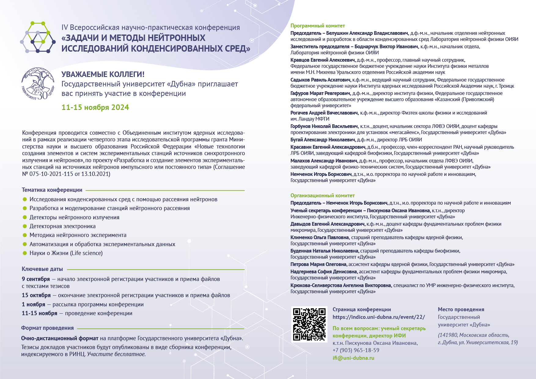 Contact person: Scientific Secretary of the conference Oksana Piskunova, PhD, +7 (903) 965-18-59, ifi@uni-dubna.ru.