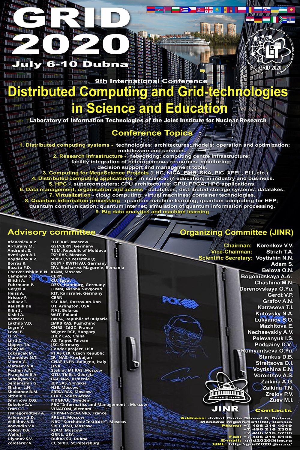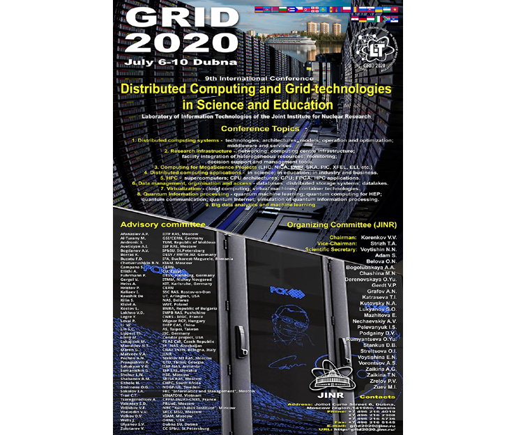 From 24 January 2020, registration for the 9th International Conference “Distributed Computing and Grid Technologies in Science and Education” (GRID’2020) is opened. The Conference will be held from 6 to 10 July 2020 in the Laboratory of Information Technologies (JINR, Dubna).