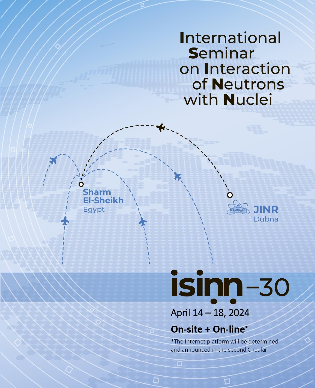 The Frank Laboratory of Neutron Physics at JINR, the Academy of Scientific Research and Technology (ASRT, Egypt), and the Egyptian Atomic Energy Authority (EAEA) invite everyone interested to take part in the 30th International Seminar on Interaction of Neutrons with Nuclei: Fundamental Interactions & Neutrons, Nuclear Structure, Ultracold Neutrons, Related Topics (ISINN-30).