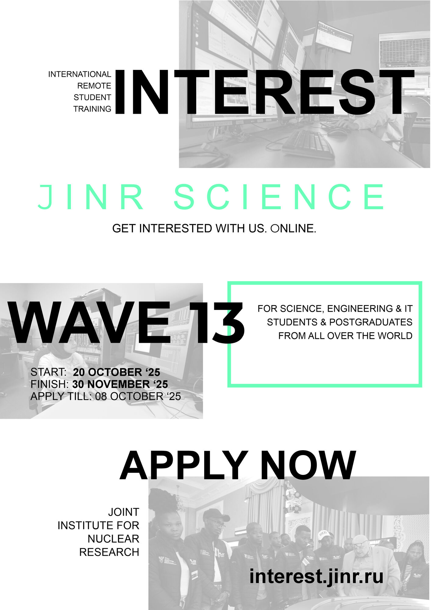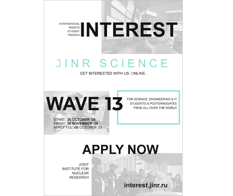 From 20 October to 30 November 2025, the JINR University Centre will hold the Wave 13 of the INTEREST (International Remote Student Training) online programme. The participants will work on selected projects under the JINR researchers’ supervision. Interest is a prospective platform for the development of international cooperation in education allowing students and postgraduates to get acquainted with the Institute’s activities of and work on projects remotely.