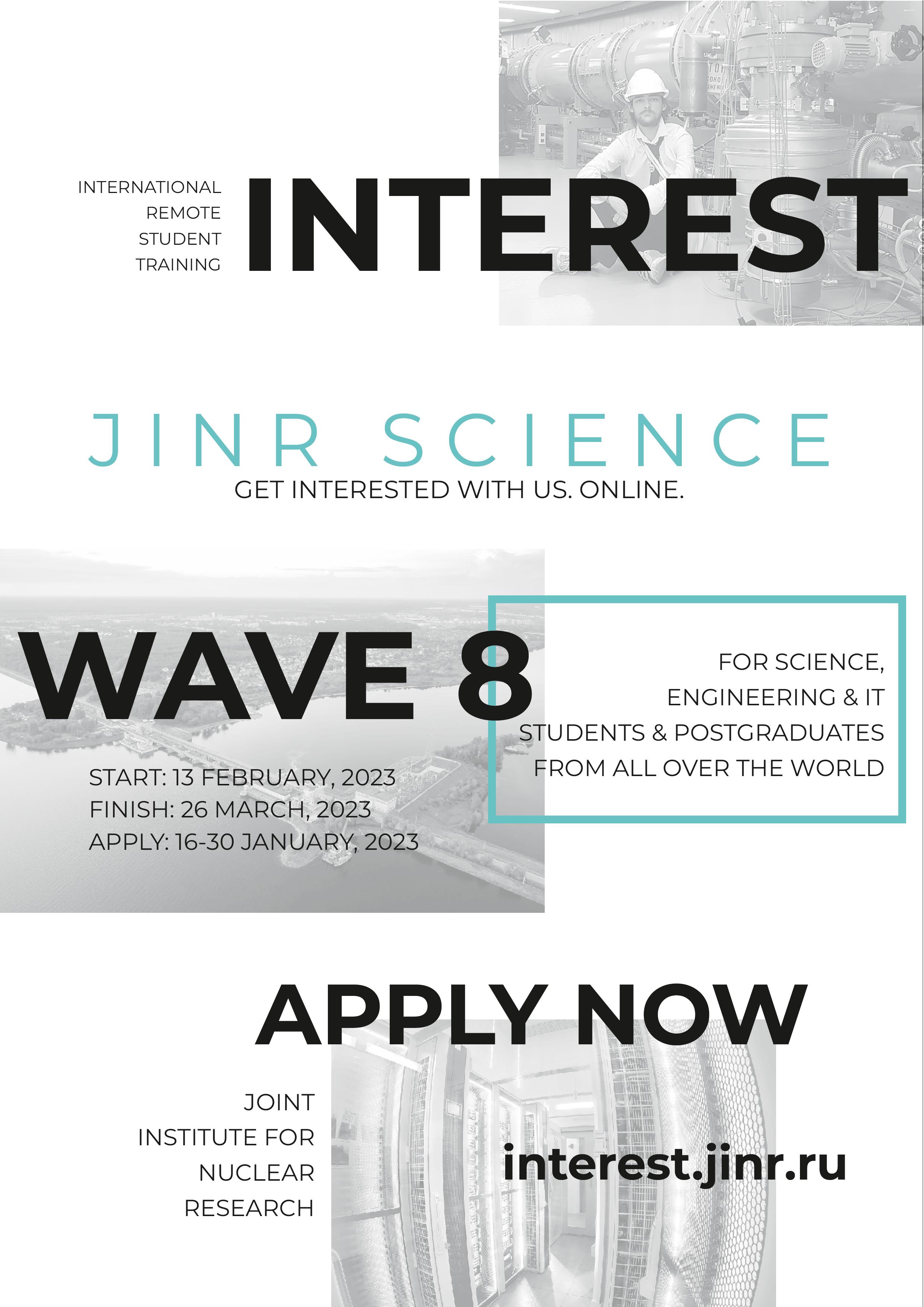The JINR University Centre announces the start of registration for Wave 8 of the INTEREST programme, which will be held from 13 February to 26 March 2023.