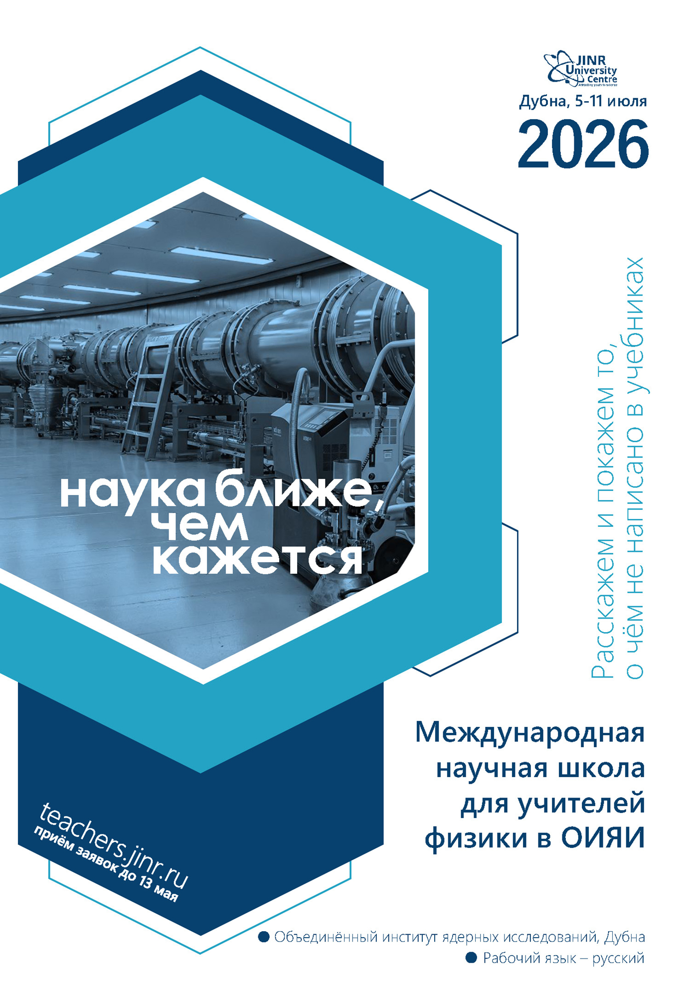 Учебно-научный центр ОИЯИ принимает заявки для участия в Международной научной школе для учителей физики, которая пройдет с 5 по 11 июля 2026 года в Дубне.