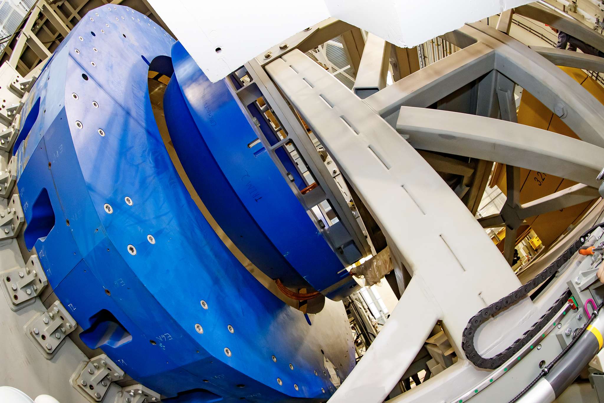 The solenoid’s relocation spanned a total distance of about 10.5 m, split into several stages, 1.5 m each. After activating the handling system, the specialists shifted the solenoid with its platform along the special rails that it stands on, at a speed of 3 mm per second. The vertical position of the upper contact surface of the rails and the straightness of the side surface of the base rail were adjusted with an accuracy of 0.4 and 0.2 mm respectively. Thus, the relocation of the massive detector, indistinguishable to the naked eye, takes about 8 minutes and 20 seconds per stage, with a 5-6 minutes preparation in between.
