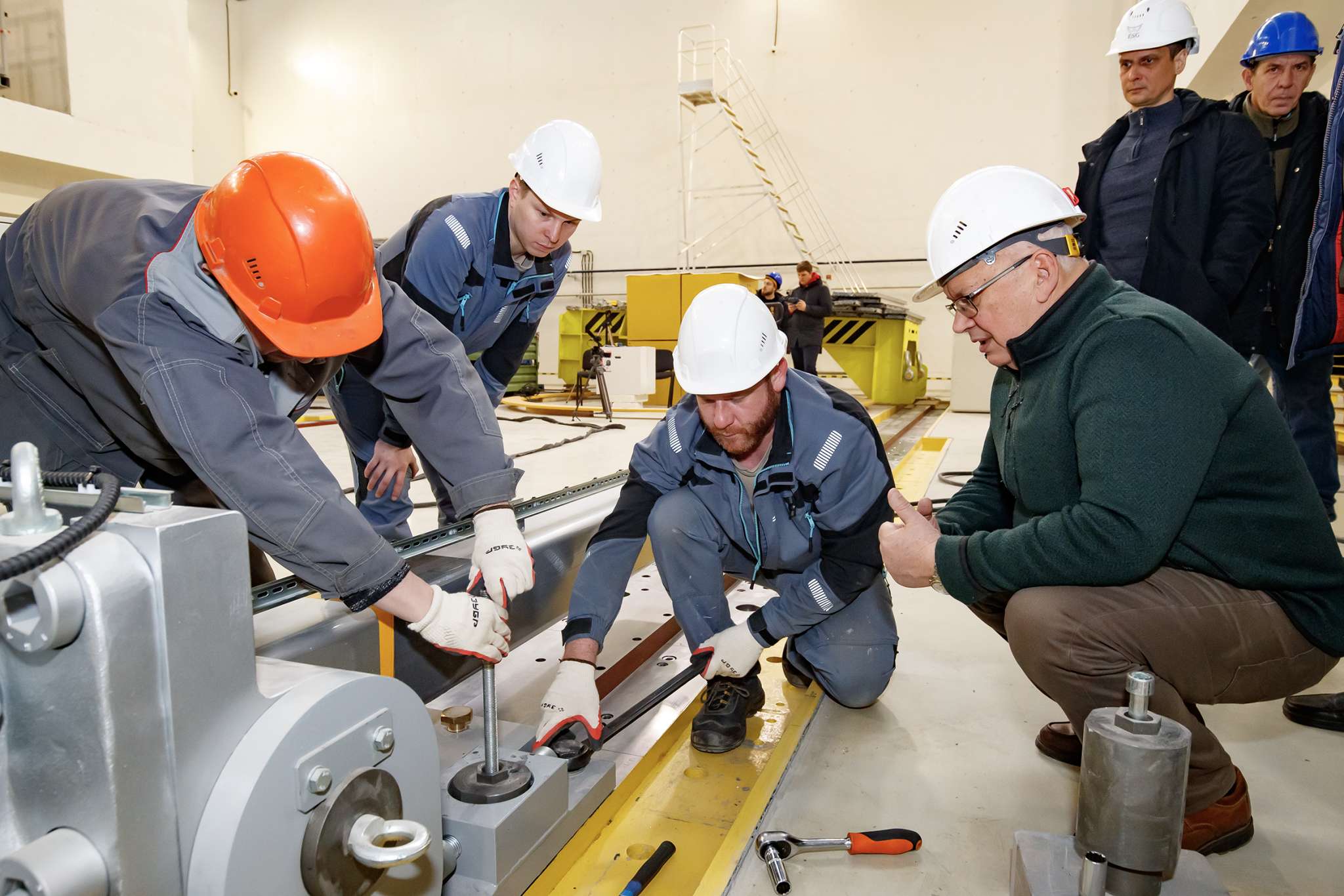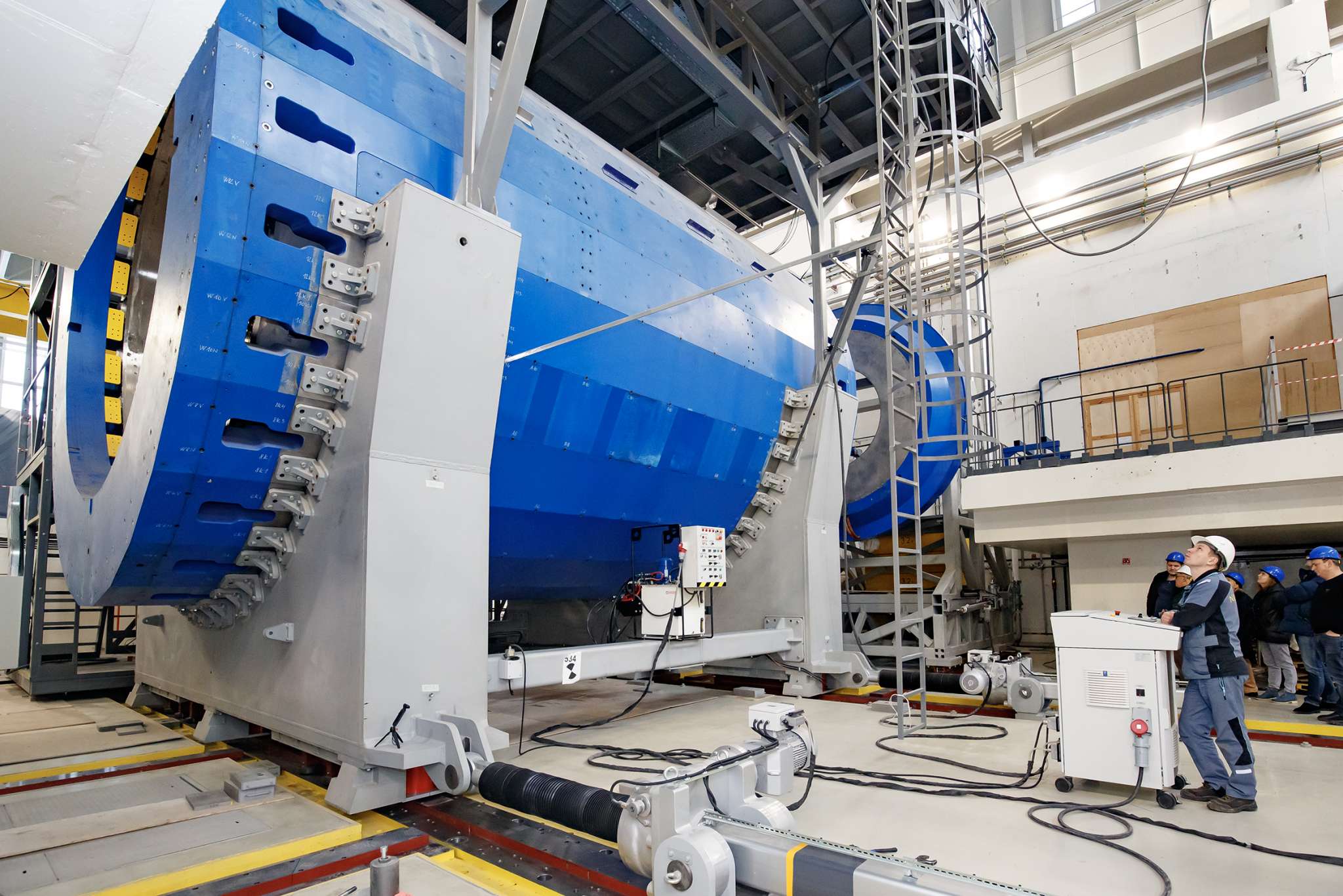 As VBLHEP Deputy Chief Engineer, NICA/MPD Chief Designer Nikolay Topilin noted, the entire process of the detector’s relocation is much faster than at CERN, where it takes about 10 minutes, with a two-hour preparation. As Nikolay Topilin explained, the Laboratory’s team developed an innovative method for setting up the support, which was used to enhance the widely used handling system specifically for MPD. “Such technology saves a huge amount of time,” the NICA/MPD Chief Designer said. He noted that the handling system allows for effortless relocation of a facility weighing about one thousand tonnes, which is roughly as much as the solenoid will weigh in the future, once the subdetectors are installed.