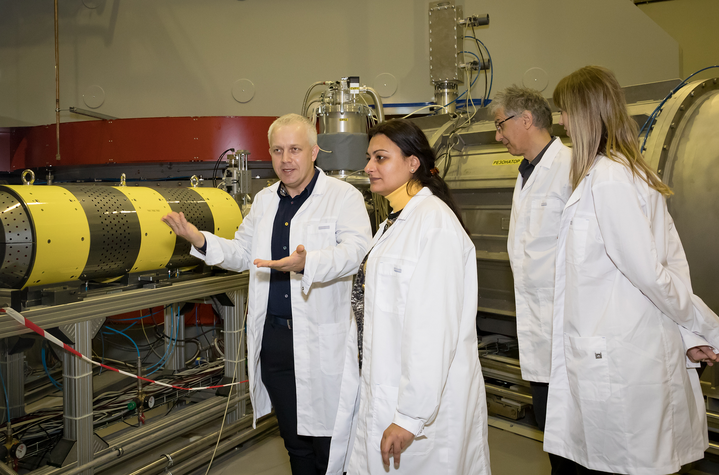 The guests were acquainted with the scientific programme of the Laboratory of Neutron Physics and visited the spectrometer complex of the IBR-2 research reactor. The delegation visited the nanocentre and the DC-280 cyclotron in the Laboratory of Nuclear Reactions. The visit of the Serbian delegation was concluded by a working lunch with the participation of FLNP Director V. N. Shvetsov and Head of the JINR International Cooperation Department D. V. Kamanin. The discussion was mainly devoted to the issues of technology transfer and training of the staff for the Republic of Serbia, in particular, in the frames of drafting the project of the construction of a research reactor in Serbia.