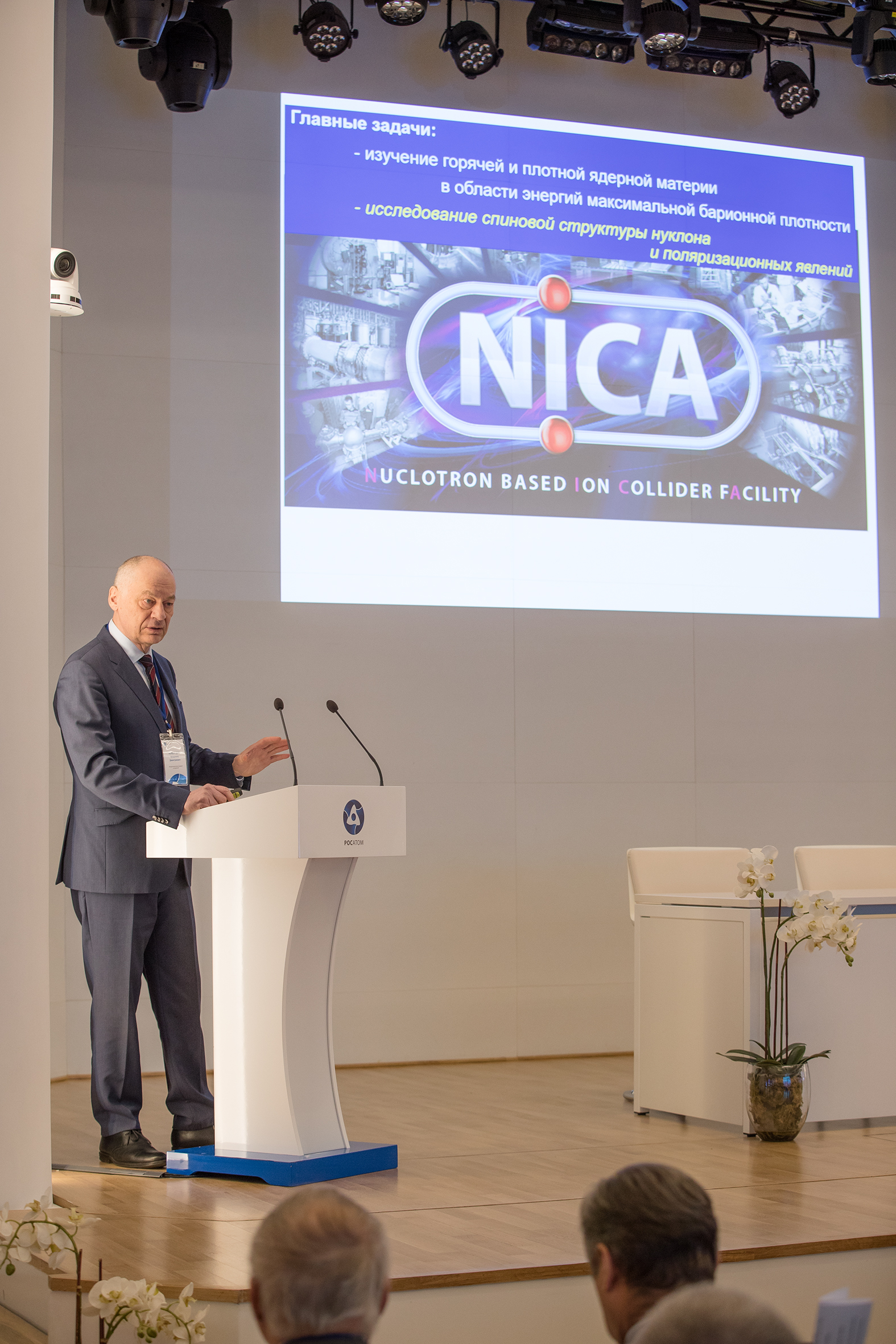 JINR Vice-Director, VBLHEP Director, RAS Corresponding Member V. D. Kekelidze made a report on the NICA mega-science project co-authored by D. V. Petrov (VNIITF).