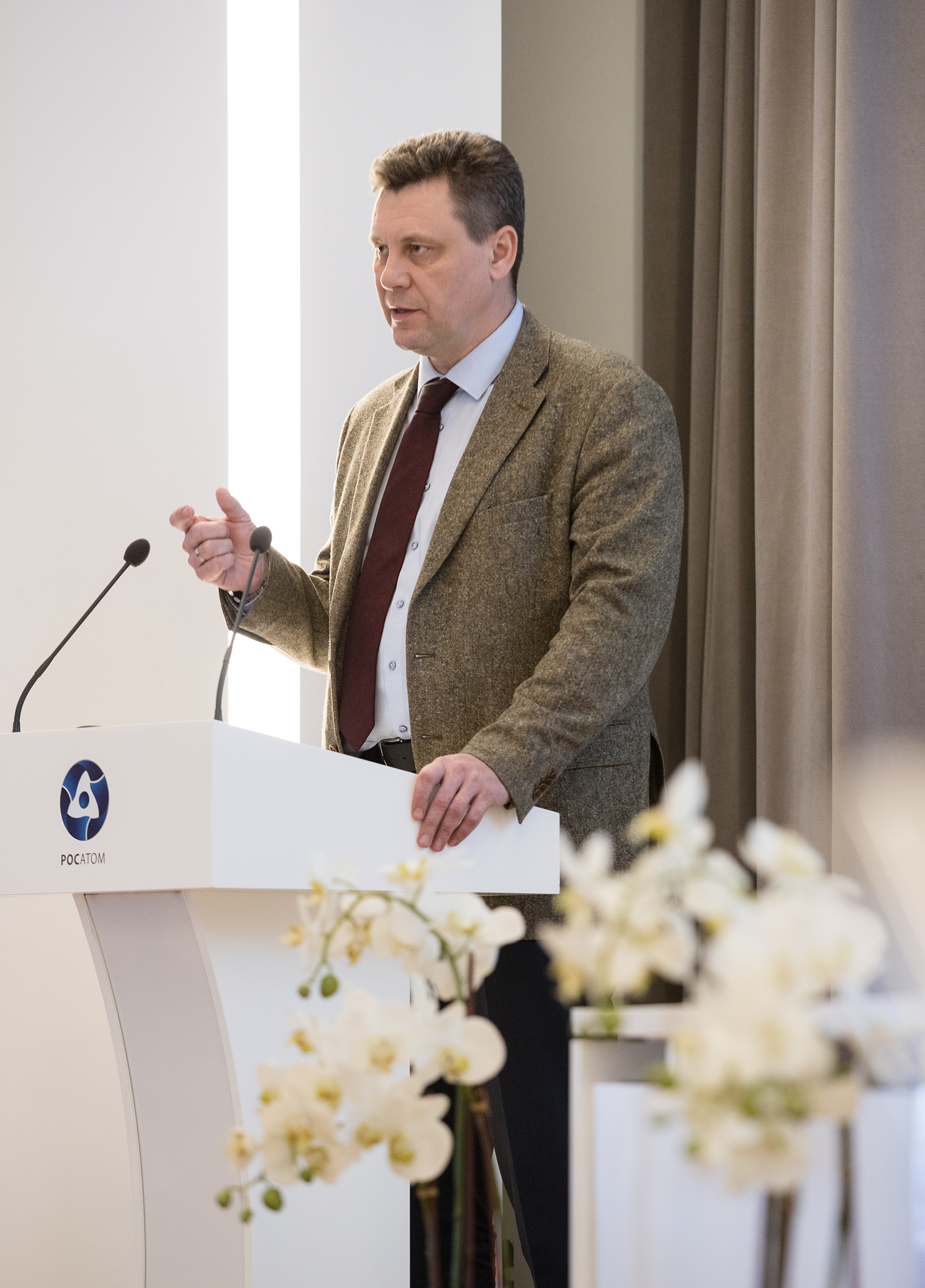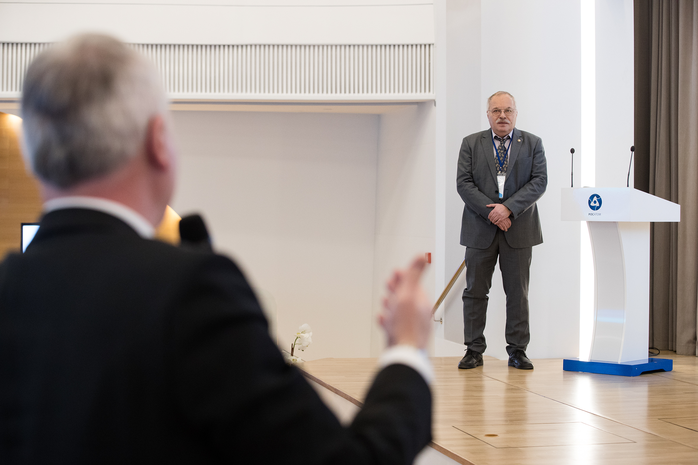 Scientific Leader of the Laboratory of Nuclear Reactions JINR Yu. Ts. Oganessian dedicated his report to new opportunities in the synthesis of superheavy elements. A co-report “Opportunities of the State Corporation “Rosatom” in providing isotopes to the Superheavy Element Factory accelerating complex” was delivered by Director of JSC “SSC RIAR” A. A. Tuzov; co-authors of the report were M. A. Semenov (Production Association «Mayak») and N. V. Zavialov (VNIIEF).