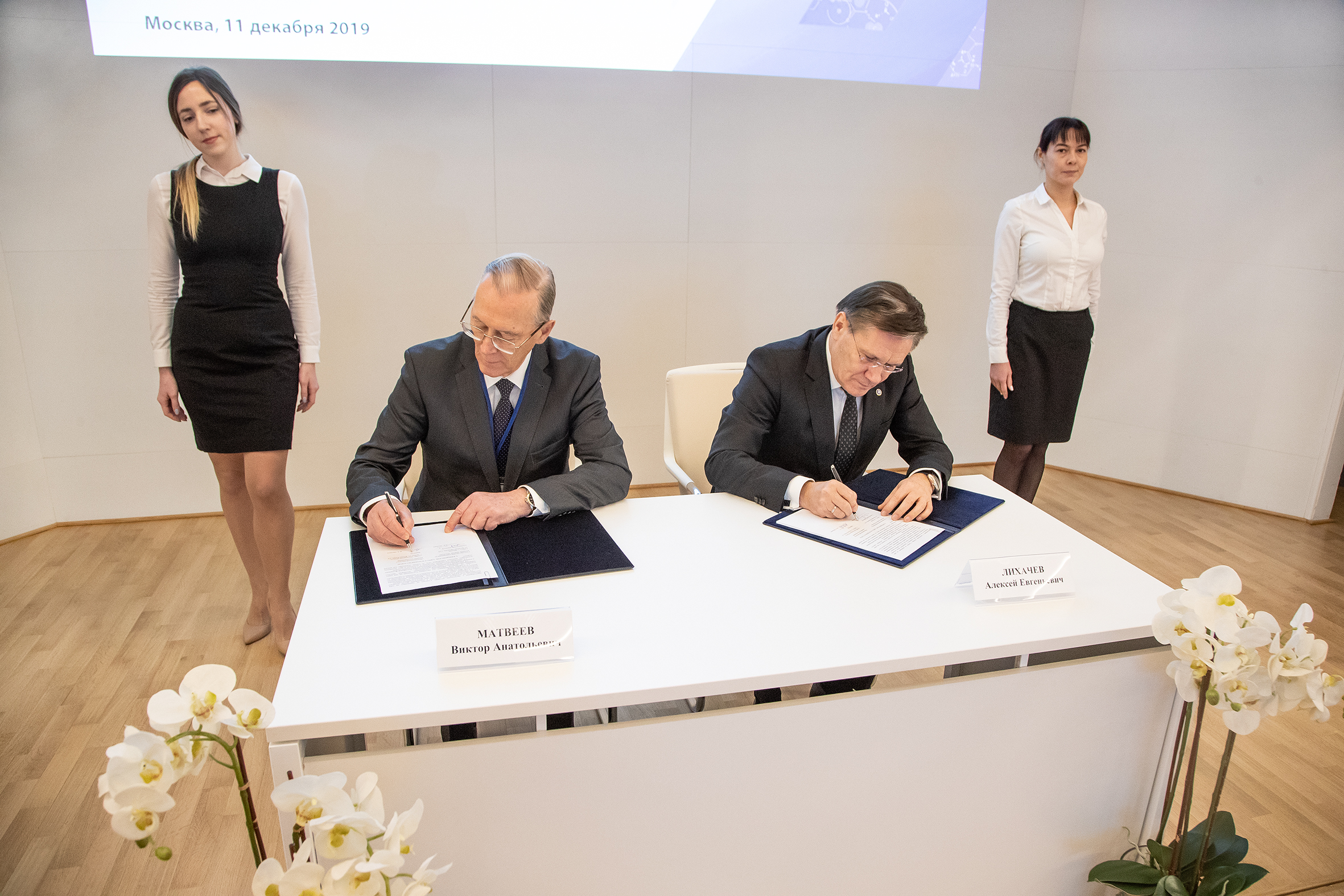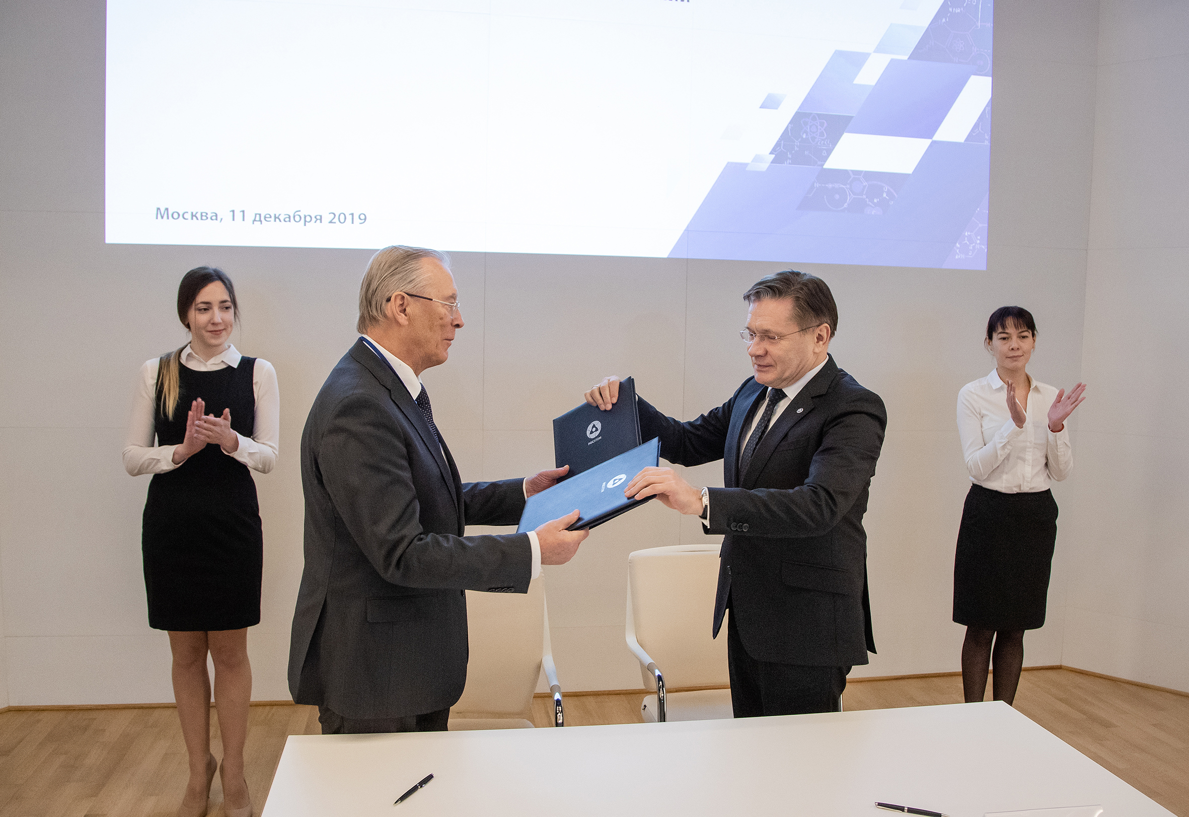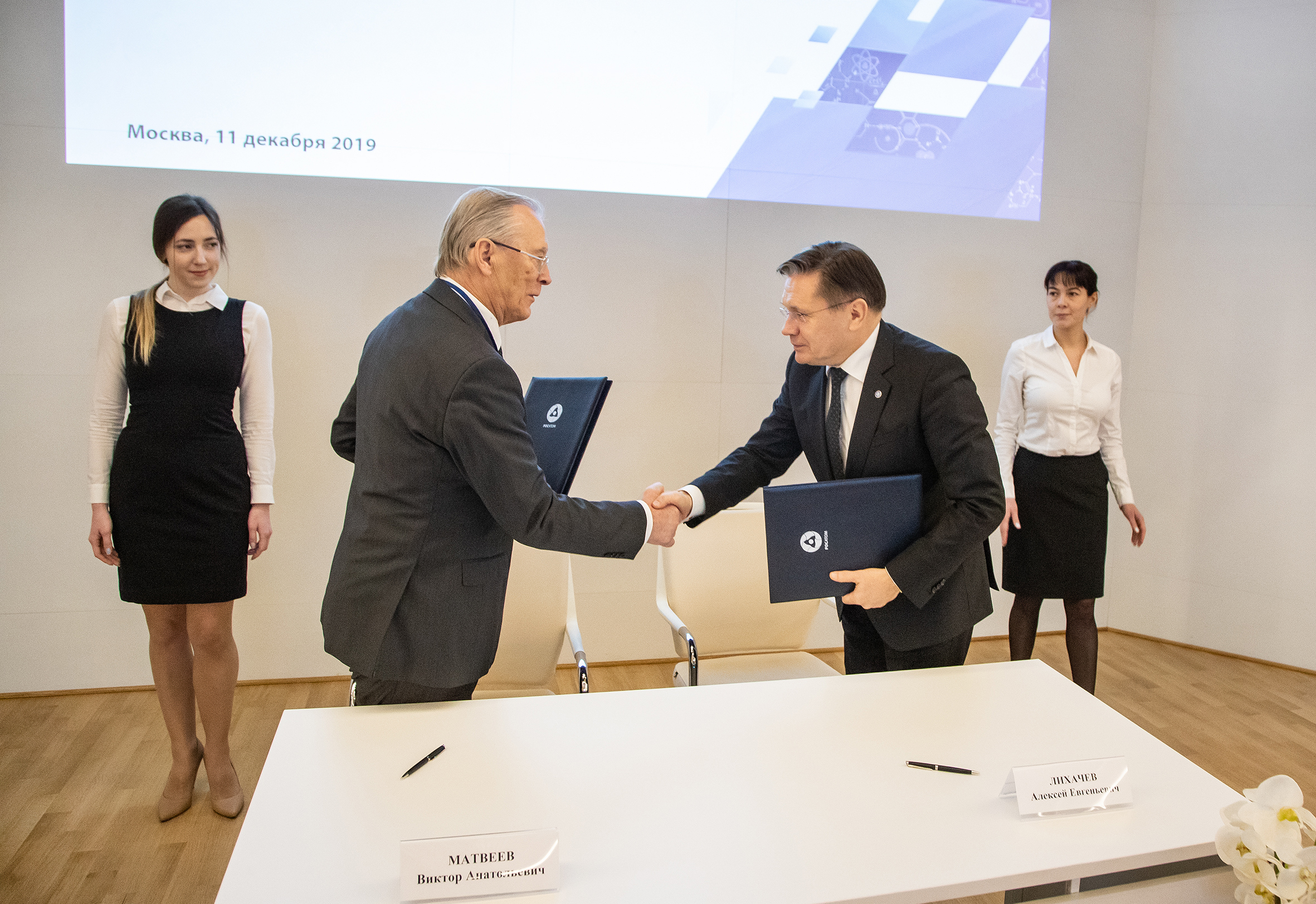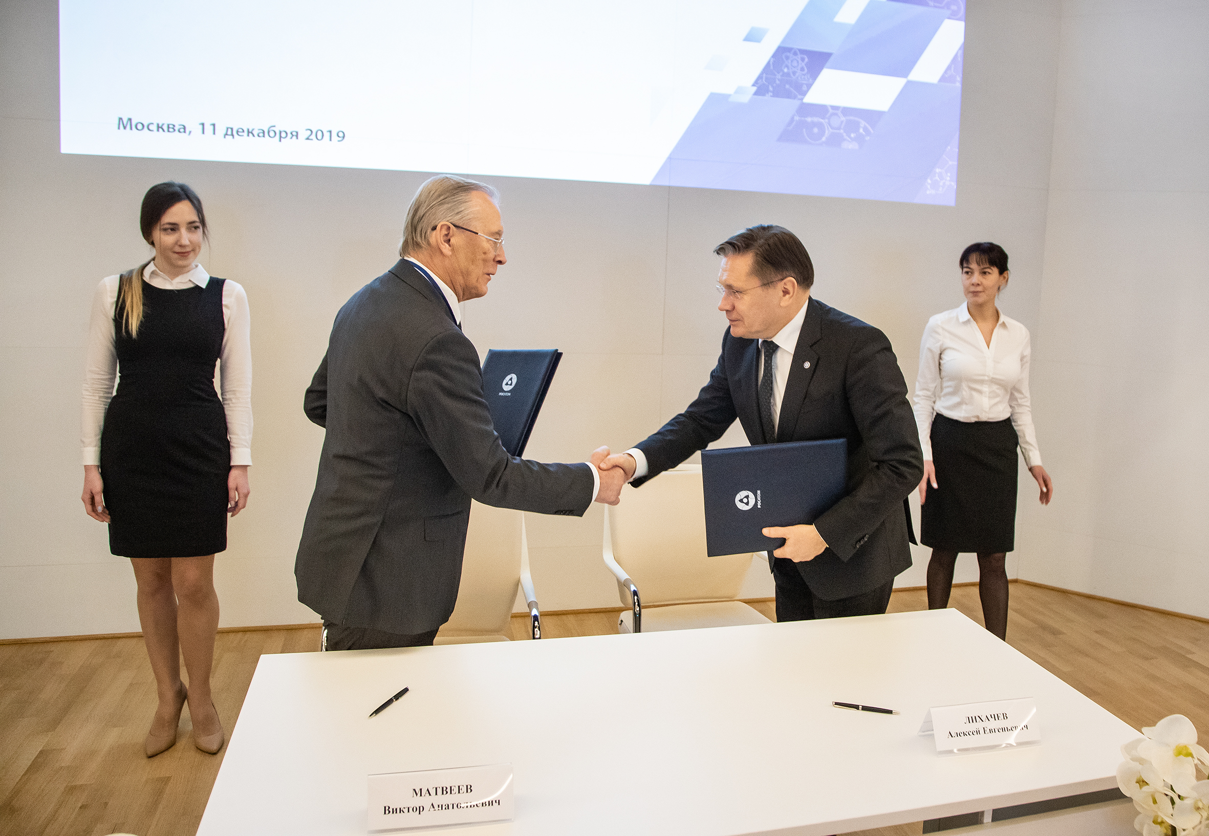 The agreement was signed in the frames of the joint meeting of the Presidium of the Science and Technology Council of the State Corporation “Rosatom” and leaders of the Joint Institute for Nuclear Research that took place on 11 December in Moscow chaired by Academician G. N. Rykovanov. Director General of “Rosatom” Alexey Likhachev and JINR Director, RAS Academician Victor Matveev signed the document.
