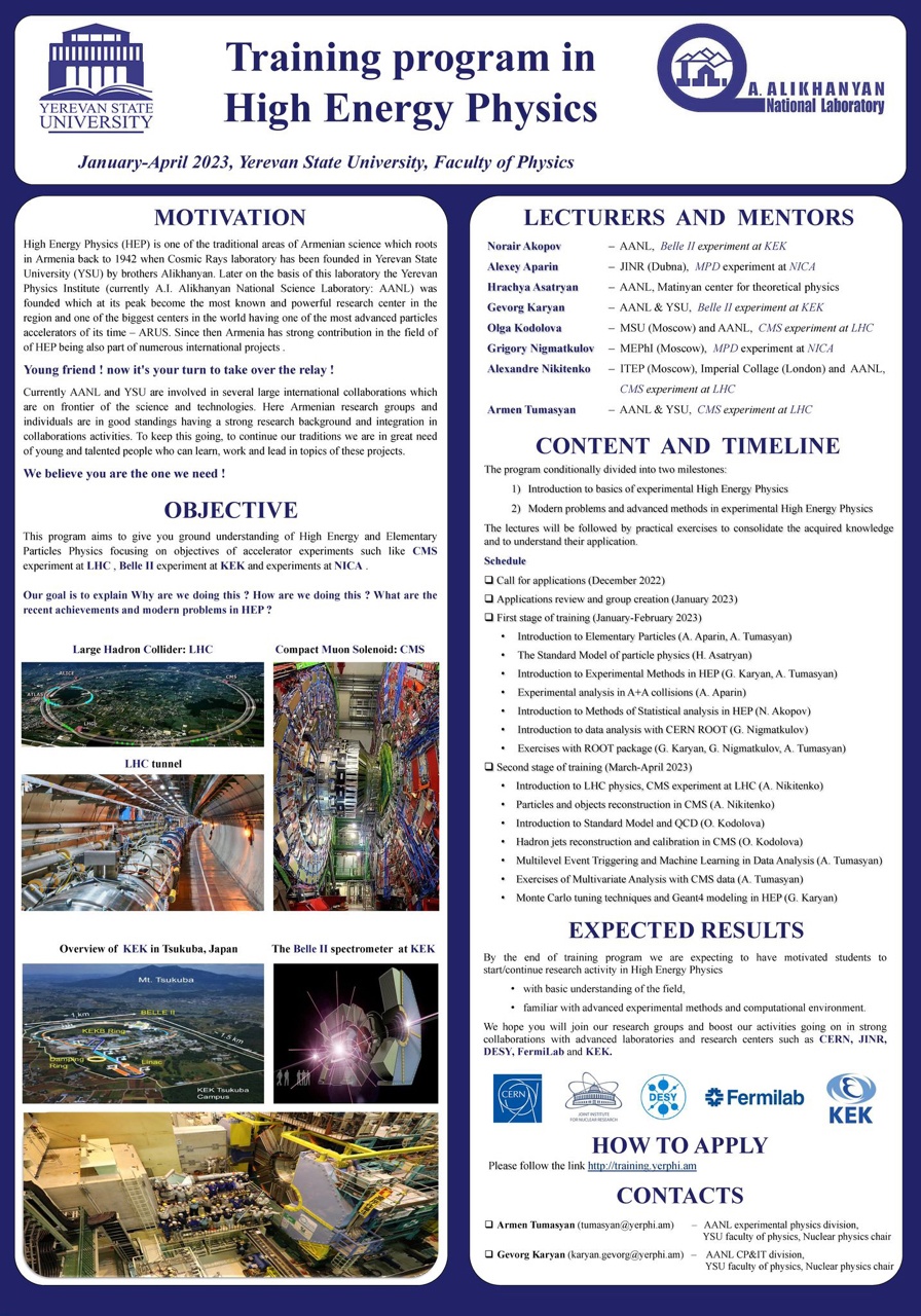 School for students and young scientists on physics at NICA Accelerator Complex at JINR Conferences Twitter Вконтакте School for students and young scientists on physics at NICA Accelerator Complex at JINR 3 – 24 February 2023. Yerevan, Armenia