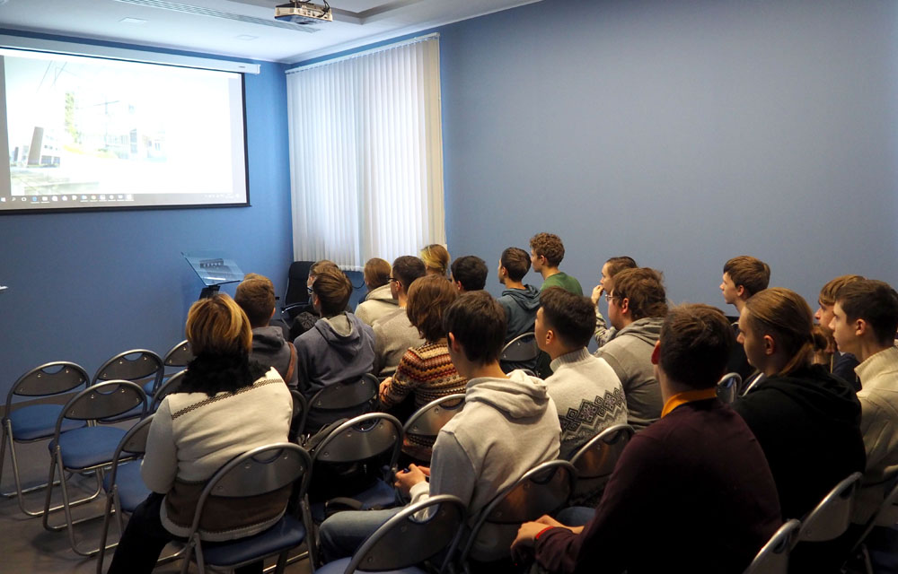Museum staff members A.Zlotnikova and K.Kozubsky showed the students the museum halls, presented the video dedicated to the 60th anniversary of JINR, delivered an introductory lecture on the JINR history and main fields of research, and on the latest discoveries by Dubna scientists.