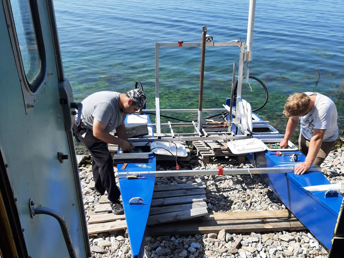 “The unmanned catamaran developed by our team allows sonar surveys in shallow areas of Baikal. The main advantage of the autonomous robotic catamaran is that it can work in two environments – on land and under water. Accumulators are charged from solar panels and make it possible for the catamaran to monitor for several days without breaks.