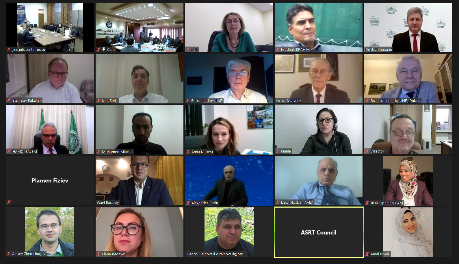 В ходе прямого включения из ASRT участники онлайн-мероприятия смогли наблюдать, как Министр Халид Абдель Гаффар и Президент ASRT Махмуд Сакр перерезали символическую красную ленту и провели торжественное открытие таблички Инфоцентра ОИЯИ, что ознаменовало официальный старт работы Информационного центра ОИЯИ в Каире. Благодаря прямому эфиру участники мероприятия в разных точках мира смогли увидеть своими глазами, как первый Инфоцентр ОИЯИ на Африканском континенте выглядит изнутри.