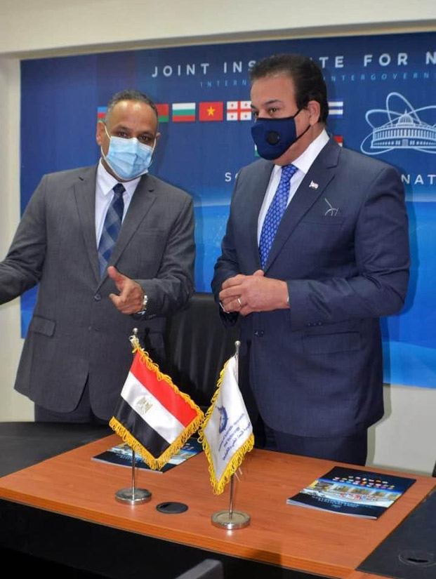 От Объединенного института в церемонии также принимали участие главный ученый секретарь Александр Сорин, начальник Отдела международных связей Дмитрий Каманин, директор Учебно-научного центра Станислав Пакуляк и Ваель Бадави, глава египетской национальной группы и координатор сотрудничества с Египтом.