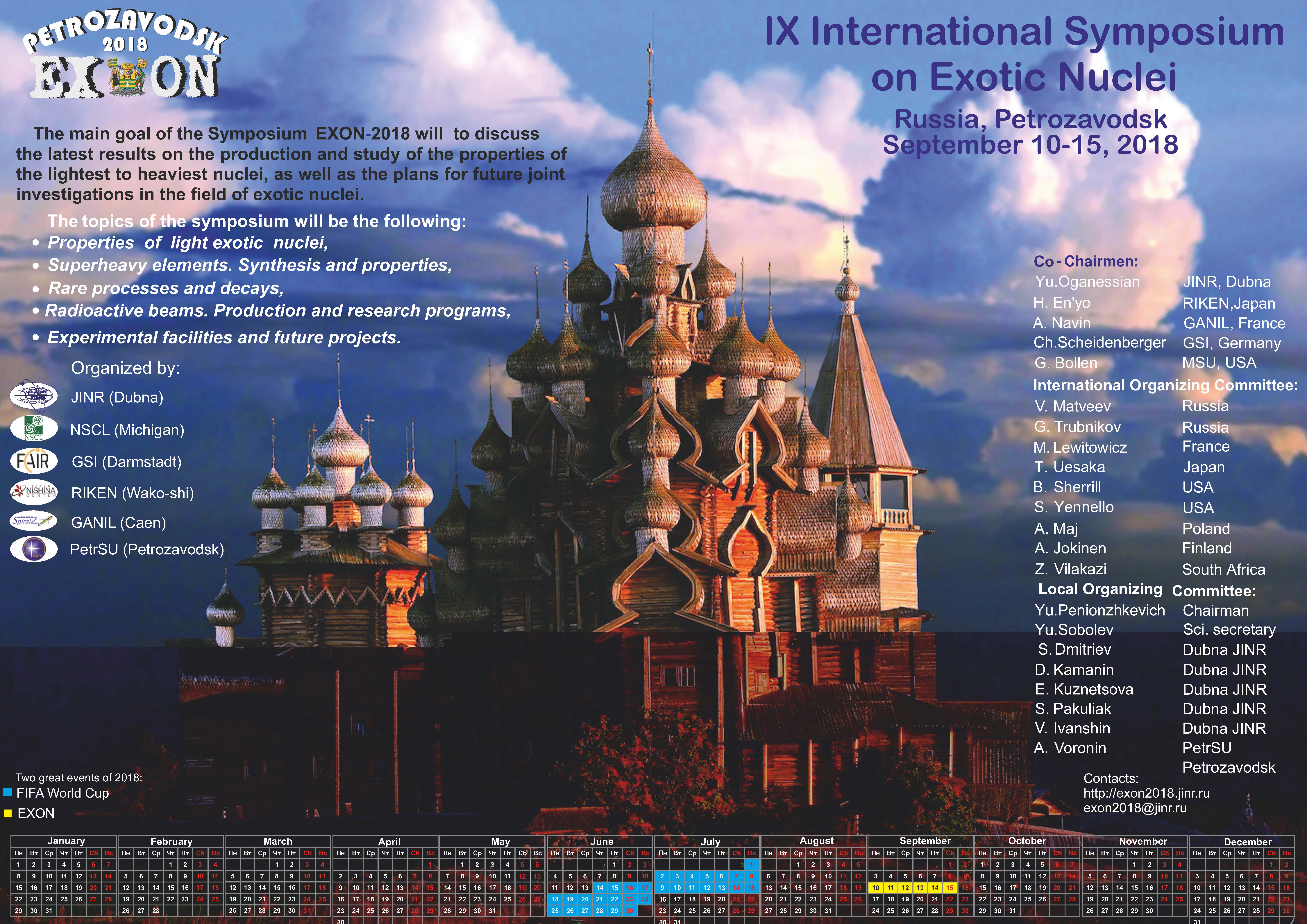 10 сентября 2018 года в Петрозаводске начнет свою работу 9-й Международный симпозиум по экзотическим ядрам (EXON 2018).