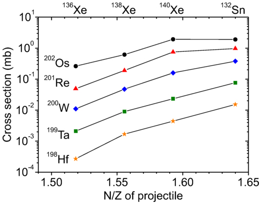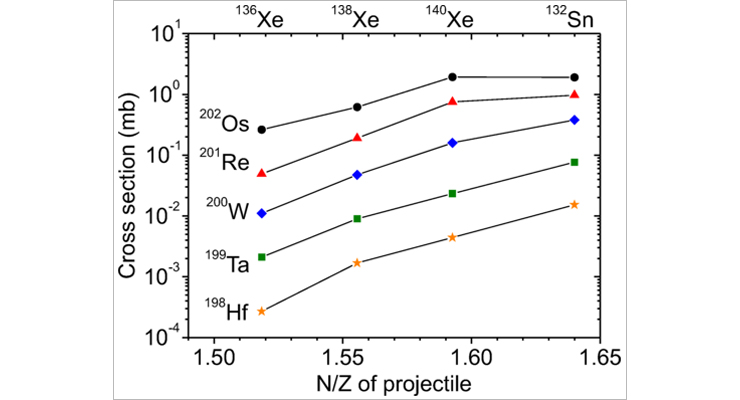 С помощью многомерной динамической модели, основанной на уравнениях Ланжевена [A.V. Karpov and V.V. Saiko, Phys. Rev. C 96, 024618 (2017)], ученые рассчитали сечения образования тяжелых нейтроноизбыточных нуклидов, полученных в реакциях многонуклонных передач 132Sn + 198Pt и 136,138,140Xe + 198Pt. Данная модель способна подробно и точно описывать полученные экспериментальные данные. Относительная скорость получения этих ядер была оценена с учетом интенсивности радиоактивных пучков на действующих установках.