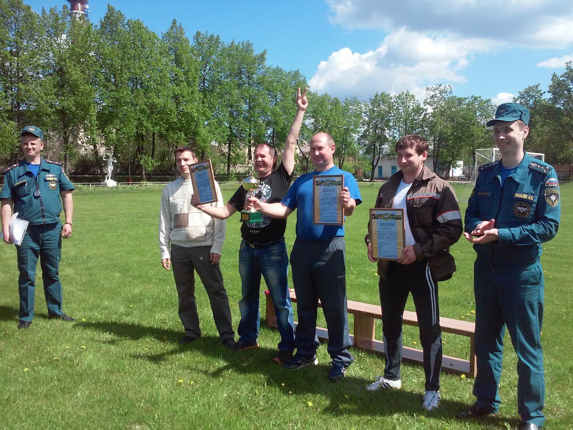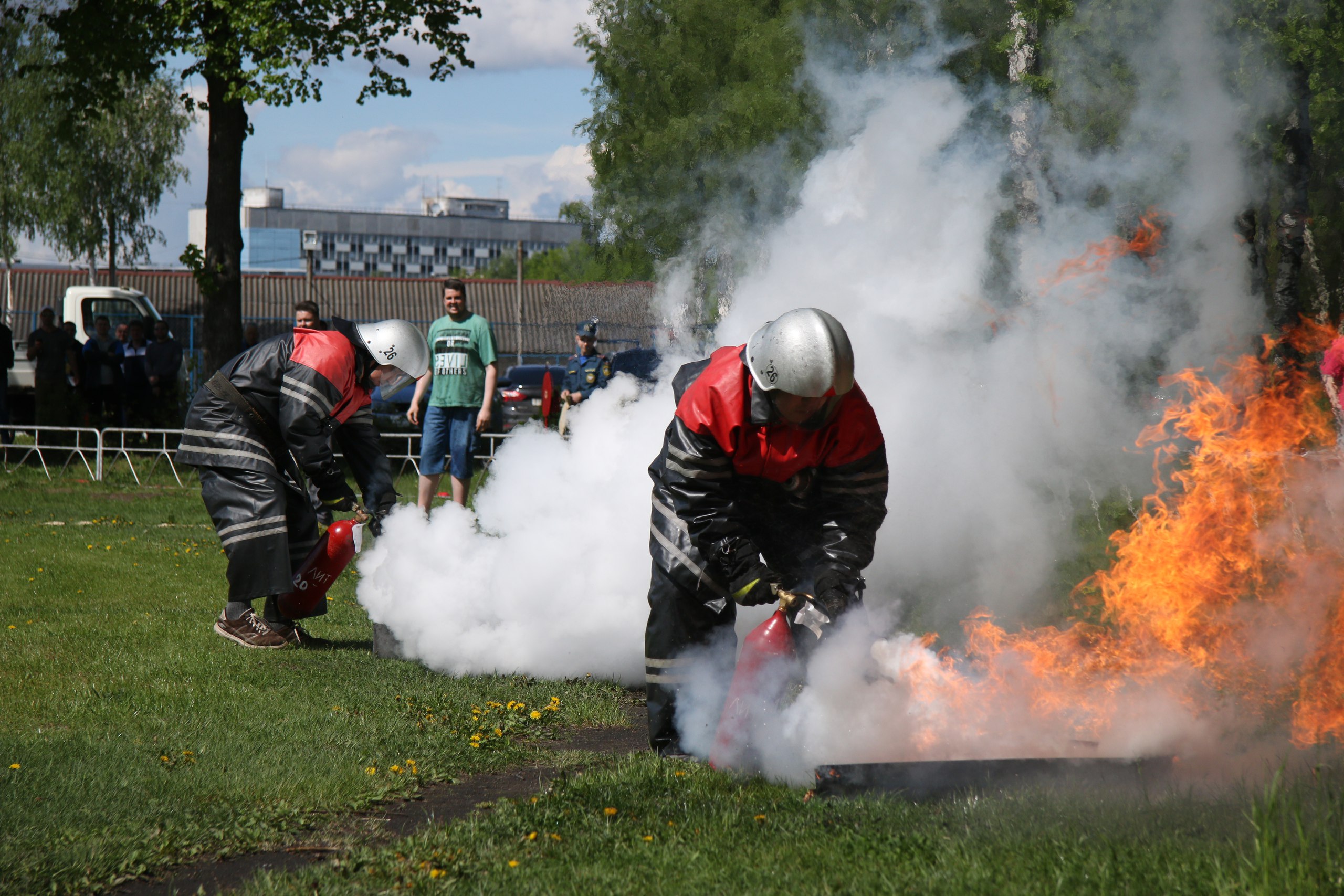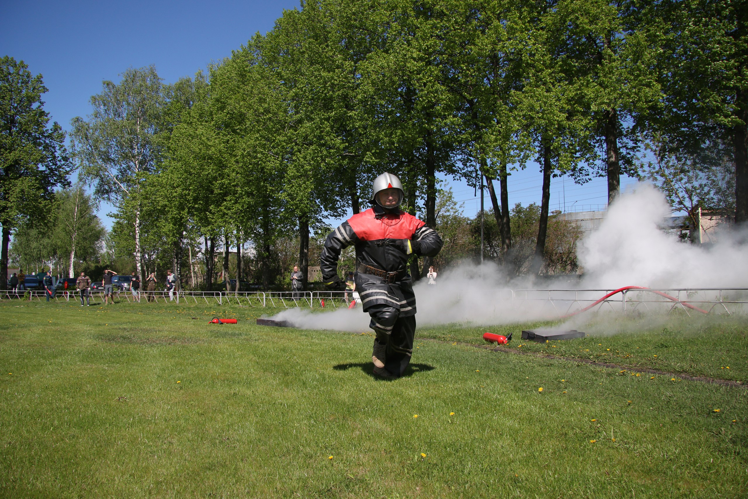 Команды ЛФВЭ, ЛНФ, РСУ, ЛИТ, ЛЯР, ЛЯП, АТХ, ОГЭ ОИЯИ соревновались в эстафете: бег 100 м, тушение импровизированного чучела, наполнение мишени, тушение горящего противня углекислотными огнетушителями.