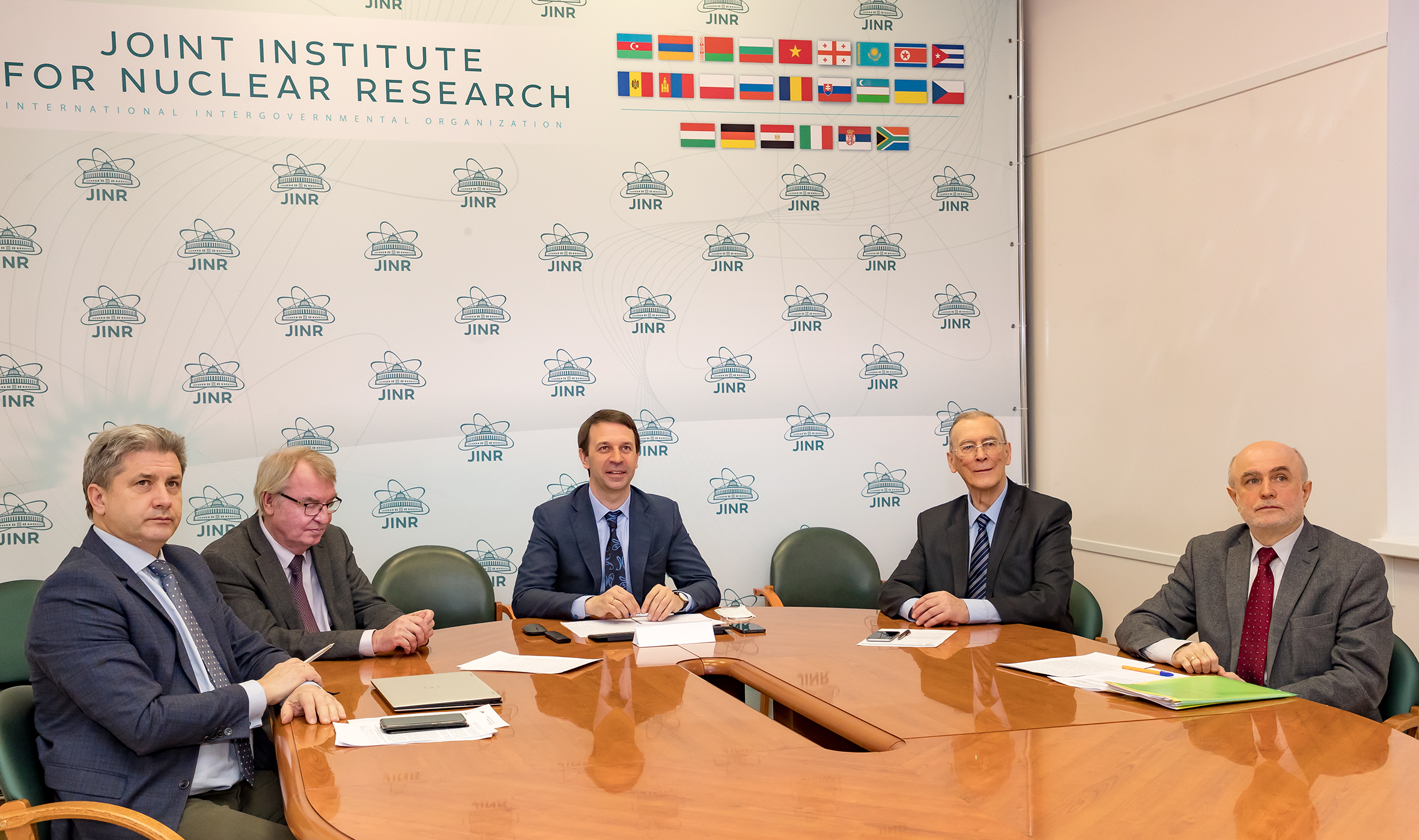 Со стороны ОИЯИ во встрече участвовали директор ОИЯИ академик Григорий Трубников, научный руководитель академик Виктор Матвеев, вице-директор Сергей Дмитриев, главный ученый секретарь Александр Сорин и начальник Департамента международных связей Дмитрий Каманин.