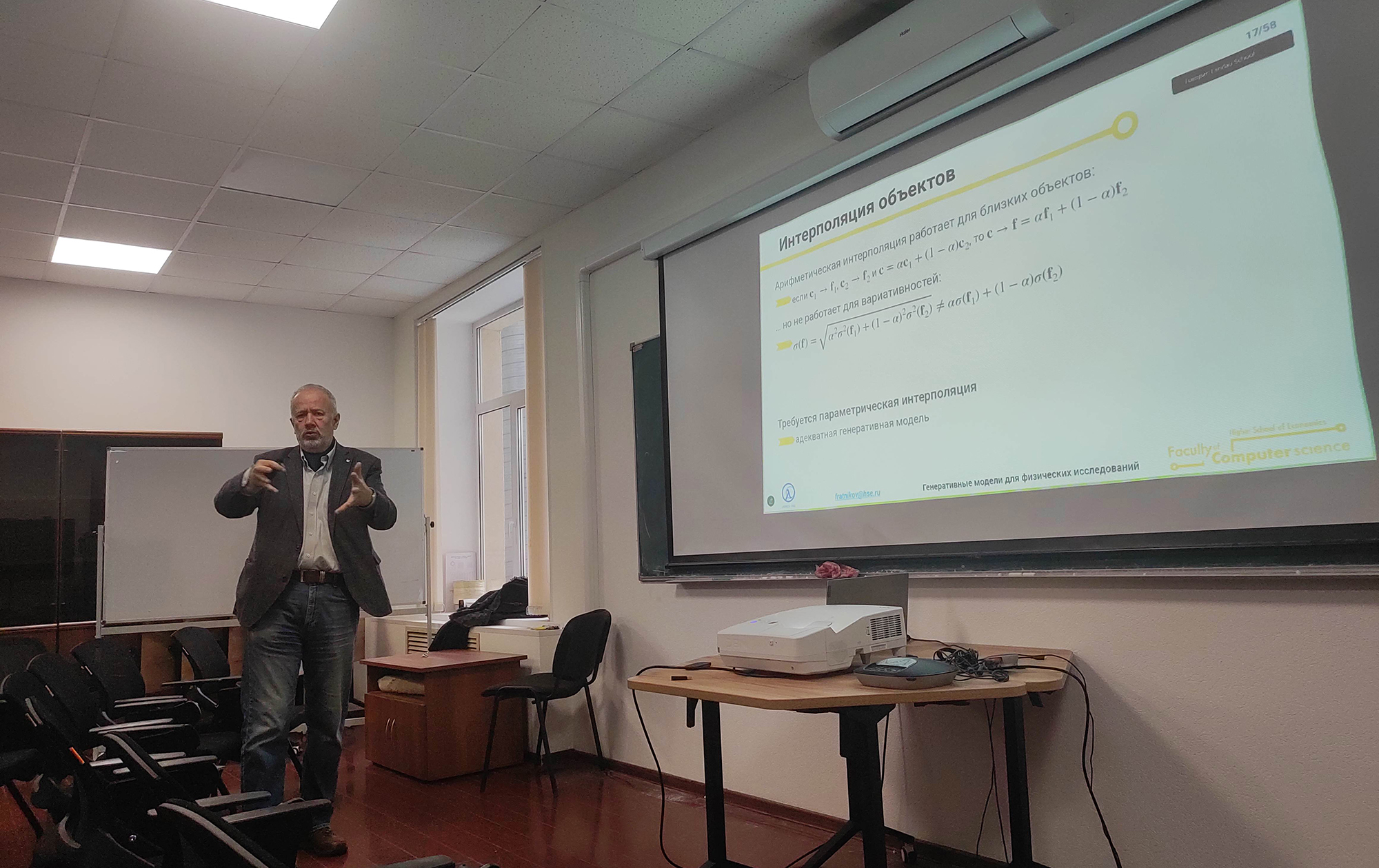 On 3 December, a LAMBDA leading researcher Fedor Ratnikov provided an overview of the main approaches to using generative neural networks to solve data processing tasks in high energy physics. A junior researcher at the HSE International Laboratory of Elementary Particle Physics (LEPP) Murad Yasaveev spoke about the use of the B-meson decay search algorithm based on ultra-precise neural networks. The presentation by a researcher at the Laboratory for Big Data Analysis in Particle Physics and Astrophysics of the Institute for Nuclear Research of the Russian Academy of Sciences (INR RAS) Ivan Kharuk devoted to the description of air showers in the Telescope Array Experiment and neutrino events at the Baikal-GVD Facility led to a lively discussion. The scientific programme of the second day ended with a talk by a MLIT JINR senior researcher Martin Bures on the use of quantum algorithms in reconstructing events in collider experiments.