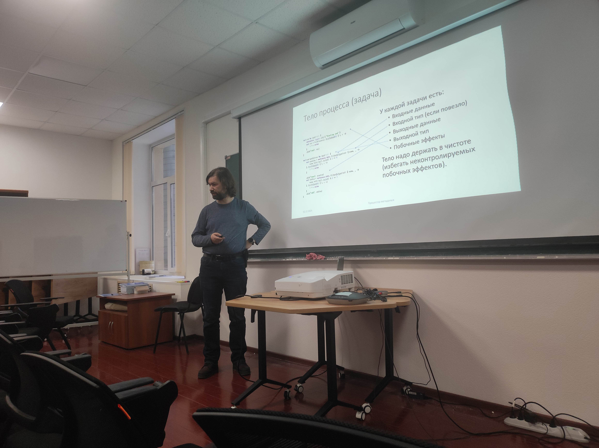 The first day’s programme continued with a presentation by a junior researcher at the Scientific and Educational Laboratory for Methods of Big Data Analysis (LAMBDA) at the Higher School of Economics (HSE) Evgeny Kurbatov on examples of applying machine learning methods to some data selection and classification tasks in the BM@N and SPD Experiments. MIPT Scientific Programming Centre Director Alexander Nozik discussed topical issues related to organizing work with data and proposed practical solutions to speed up analysis and reduce the time spent debugging programs.