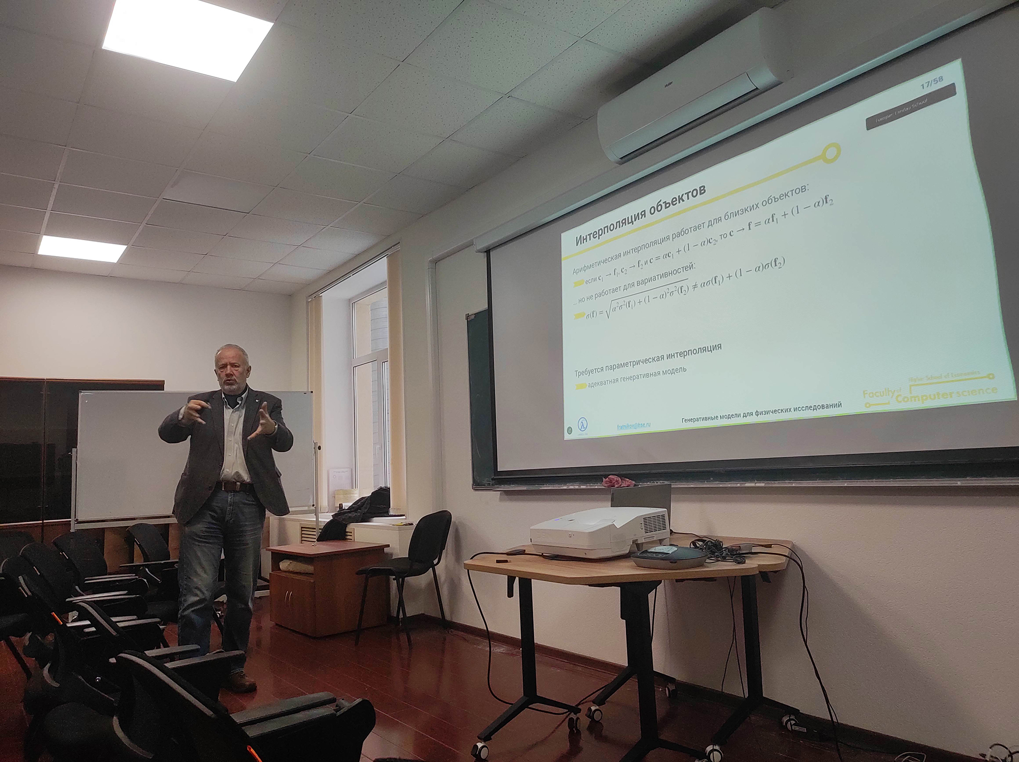 On 3 December, a LAMBDA leading researcher Fedor Ratnikov provided an overview of the main approaches to using generative neural networks to solve data processing tasks in high energy physics. A junior researcher at the HSE International Laboratory of Elementary Particle Physics (LEPP) Murad Yasaveev spoke about the use of the B-meson decay search algorithm based on ultra-precise neural networks. The presentation by a researcher at the Laboratory for Big Data Analysis in Particle Physics and Astrophysics of the Institute for Nuclear Research of the Russian Academy of Sciences (INR RAS) Ivan Kharuk devoted to the description of air showers in the Telescope Array Experiment and neutrino events at the Baikal-GVD Facility led to a lively discussion. The scientific programme of the second day ended with a talk by a MLIT JINR senior researcher Martin Bures on the use of quantum algorithms in reconstructing events in collider experiments.
