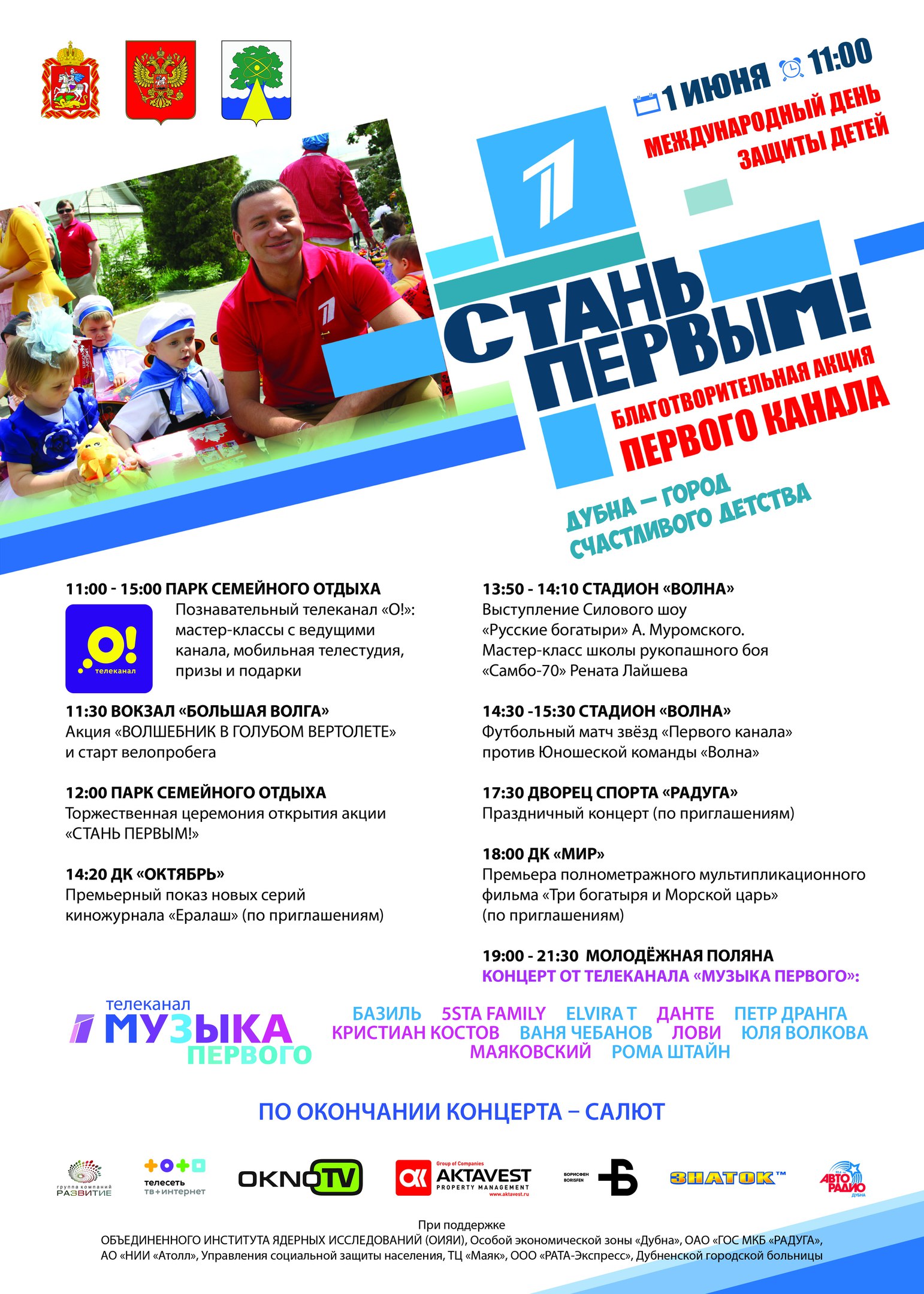 В рамках Международного дня защиты детей 1 июня 2017 года в Дубне при активной поддержке Объединенного института ядерных исследований пройдет благотворительная акция Первого Канала «Стань Первым!».