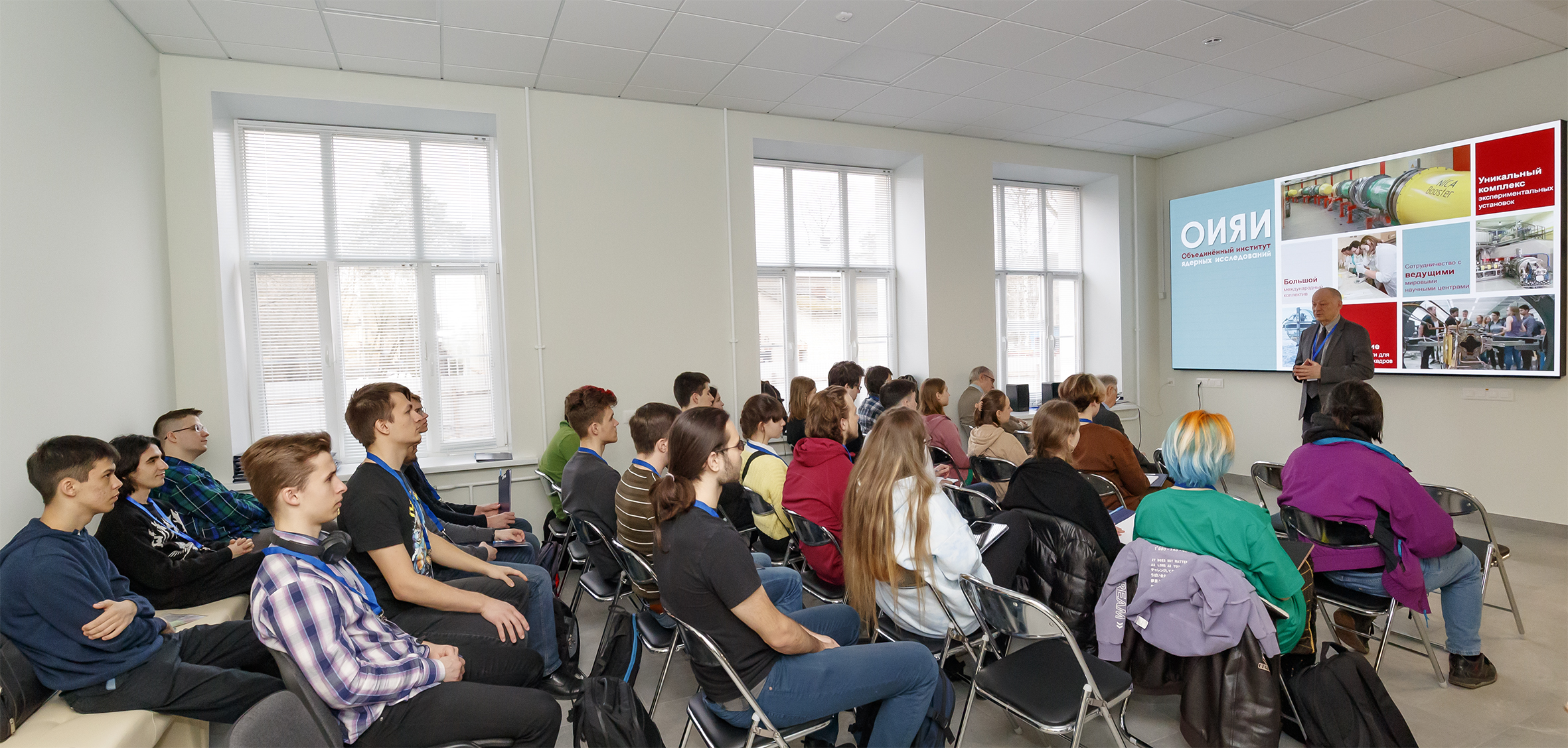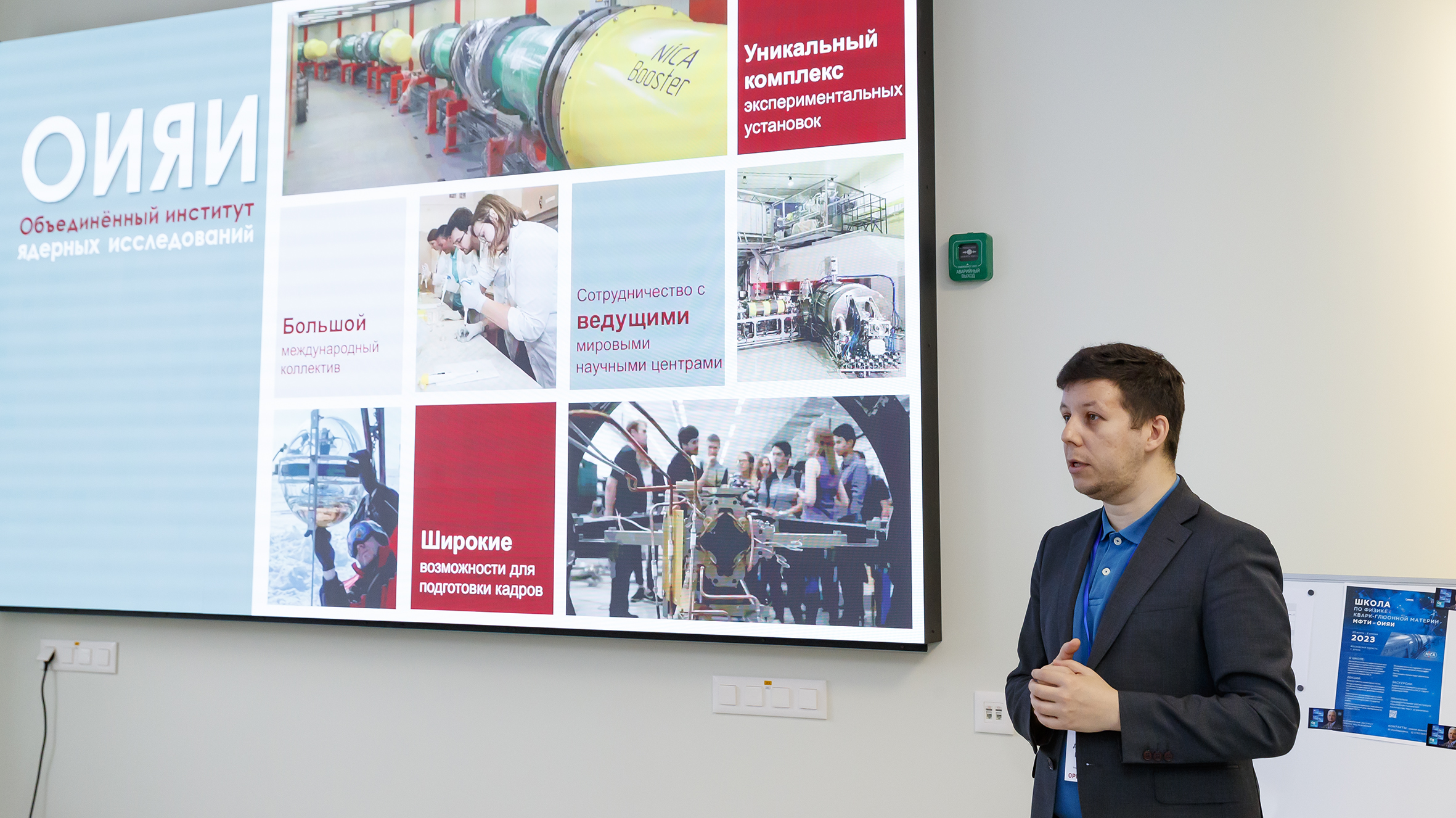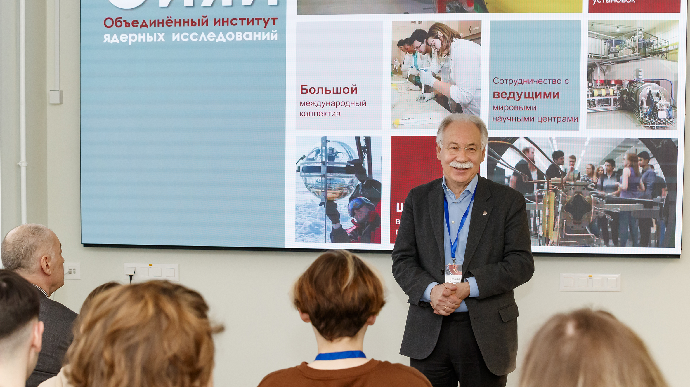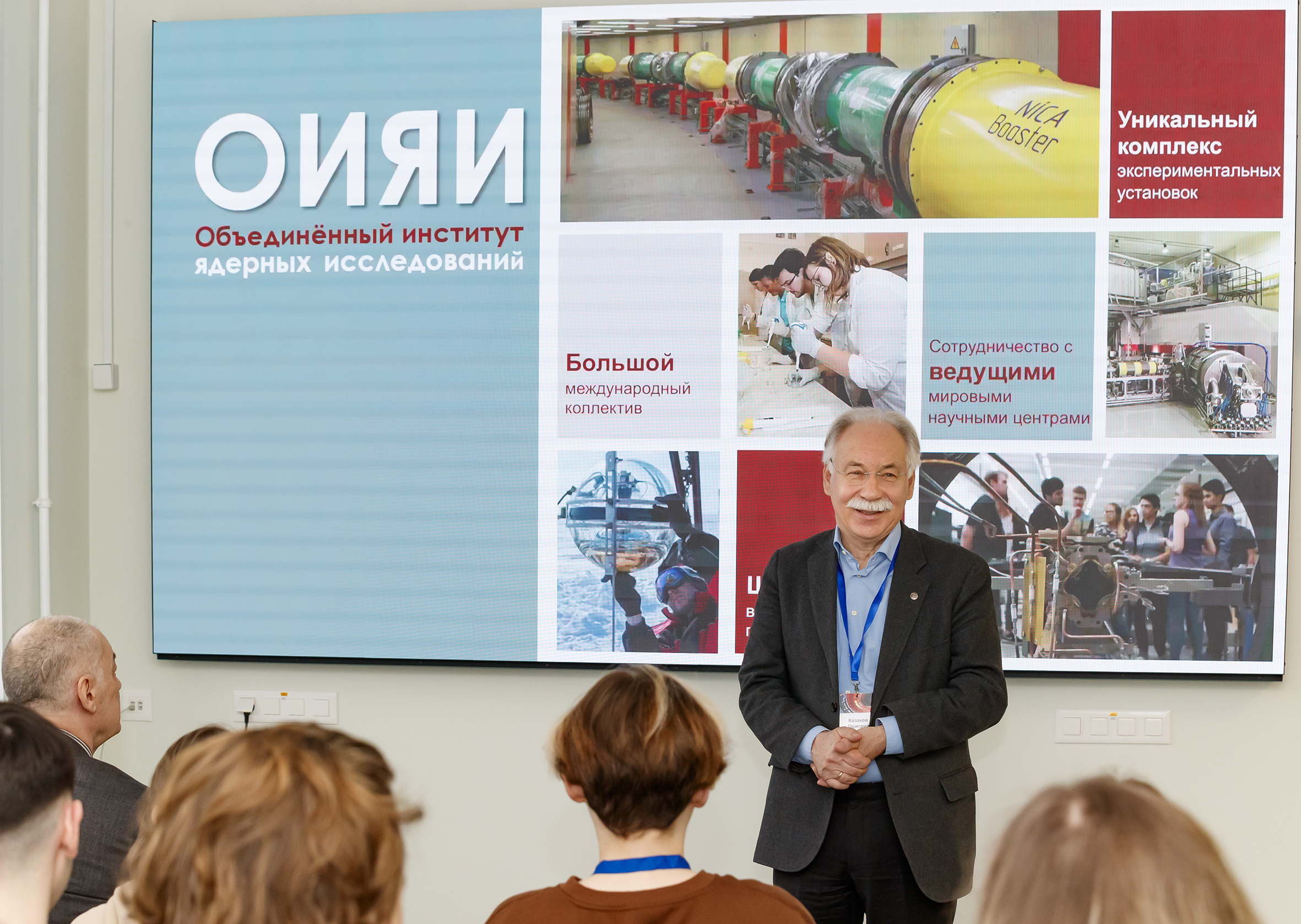 Сегодня в новом корпусе Учебно-научного центра ОИЯИ стартовало первое мероприятие — совместная ОИЯИ-МФТИ Школа по физике кварк-глюонной материи. В течение пяти дней участники будут знакомиться с Объединенным институтом, его проектами, прослушают ряд лекций и посетят с экскурсиями лаборатории ОИЯИ. Открыла программу школы лекция директора Лаборатории теоретической физики ОИЯИ, заведующего кафедрой фундаментальных и прикладных проблем физики микромира МФТИ Дмитрия Казакова.