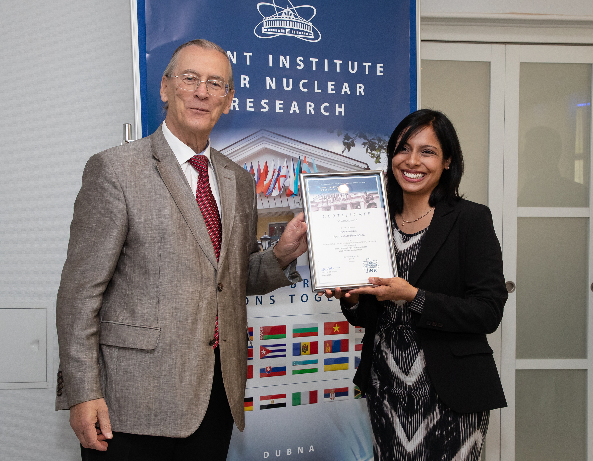 Участниками этой стажировки стали специалисты из Болгарии, Ботсваны, Вьетнама, Египта, Италии, ЮАР. Они познакомились с фундаментальными и прикладными исследованиями, ведущимися в лабораториях Института, базовыми установками, международным сотрудничеством и образовательными возможностями. Кроме того, участники стажировки познакомились с достопримечательностями Дубны, историей России и советского Атомного проекта.