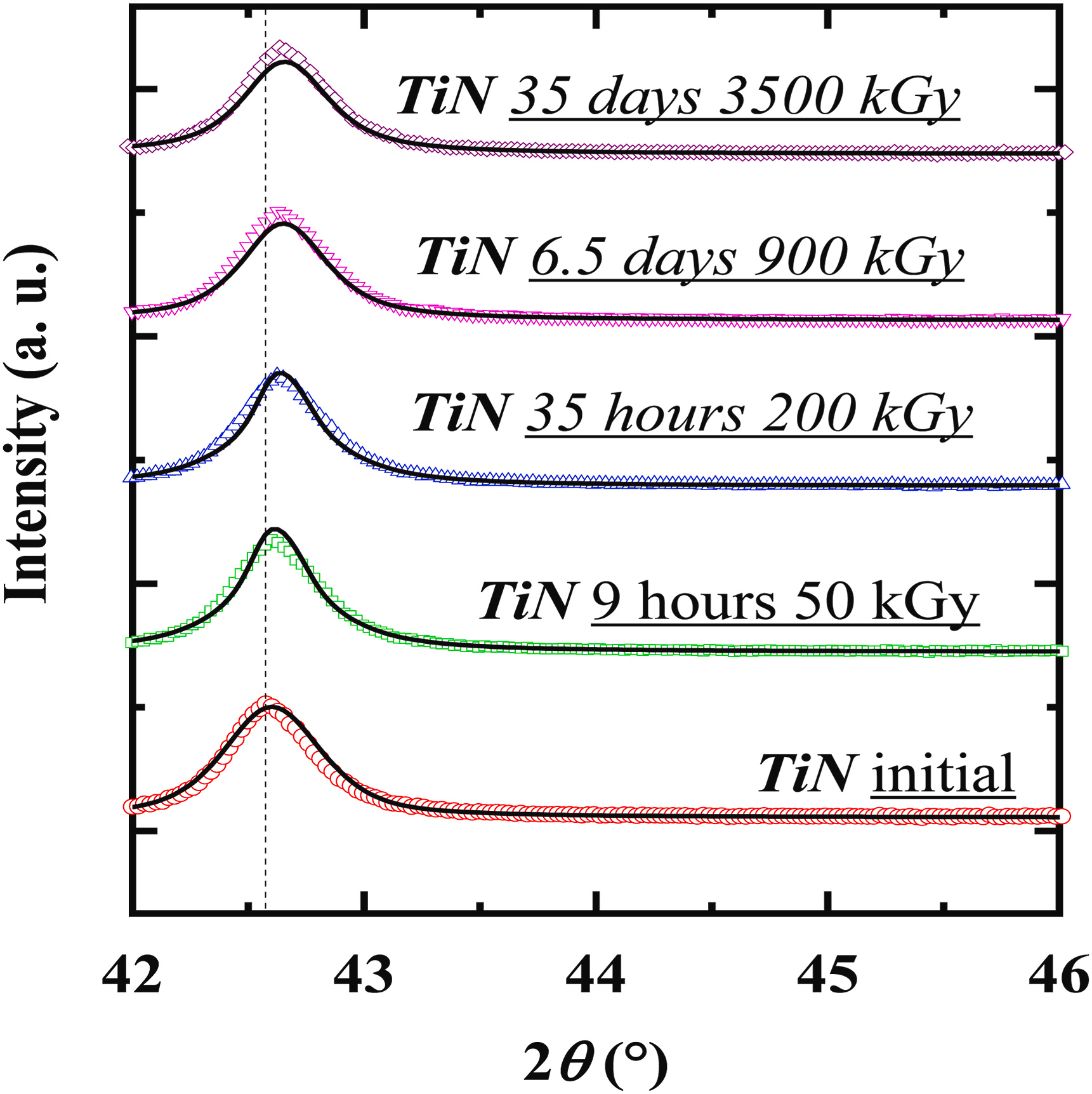 Радиационный сдвиг максимума в рентгеновских дифракционных спектрах наночастиц TiN