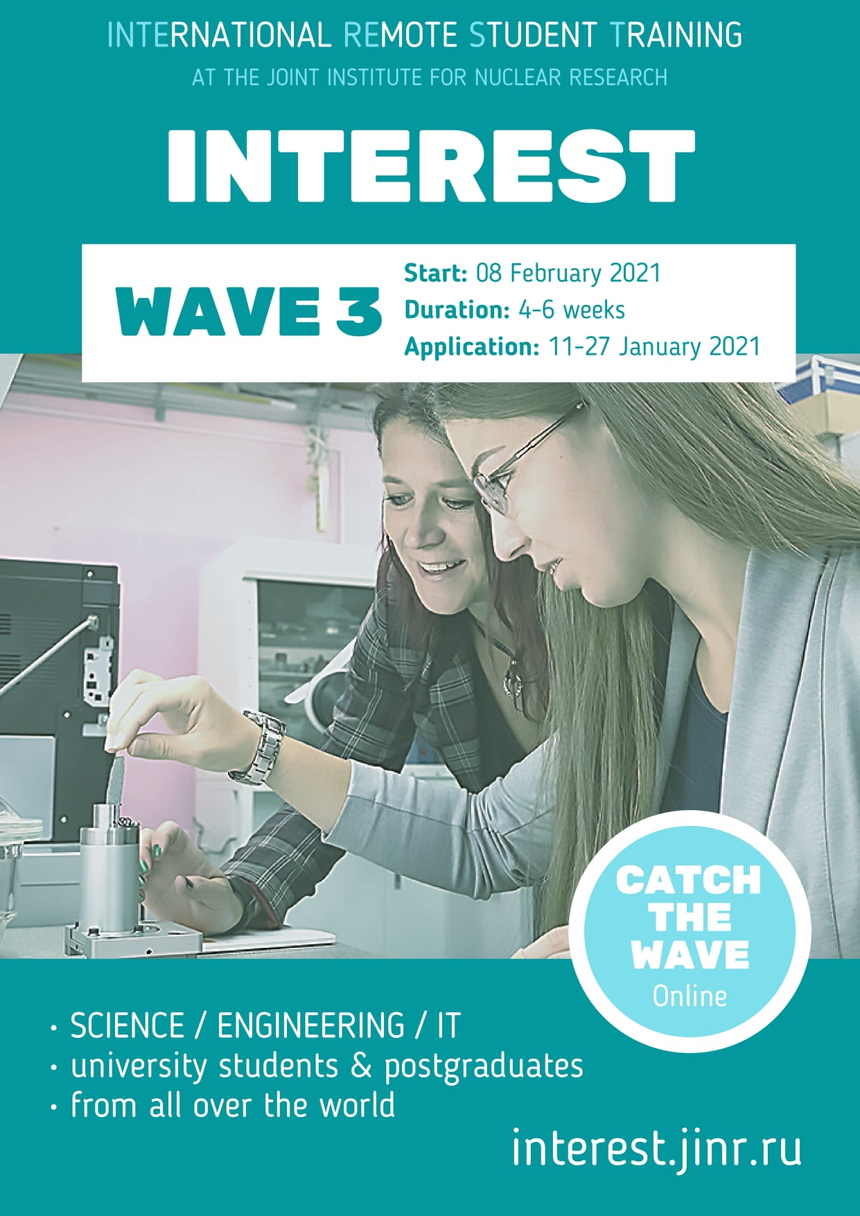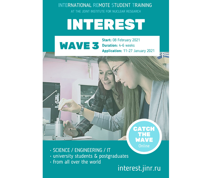 INTEREST is a new online programme of the JINR University Centre for postgraduates and students (2-grade and upper) studying science/engineering/IT from all over the world. The key goal of the programme is to help them choose research projects in one of the JINR research fields.