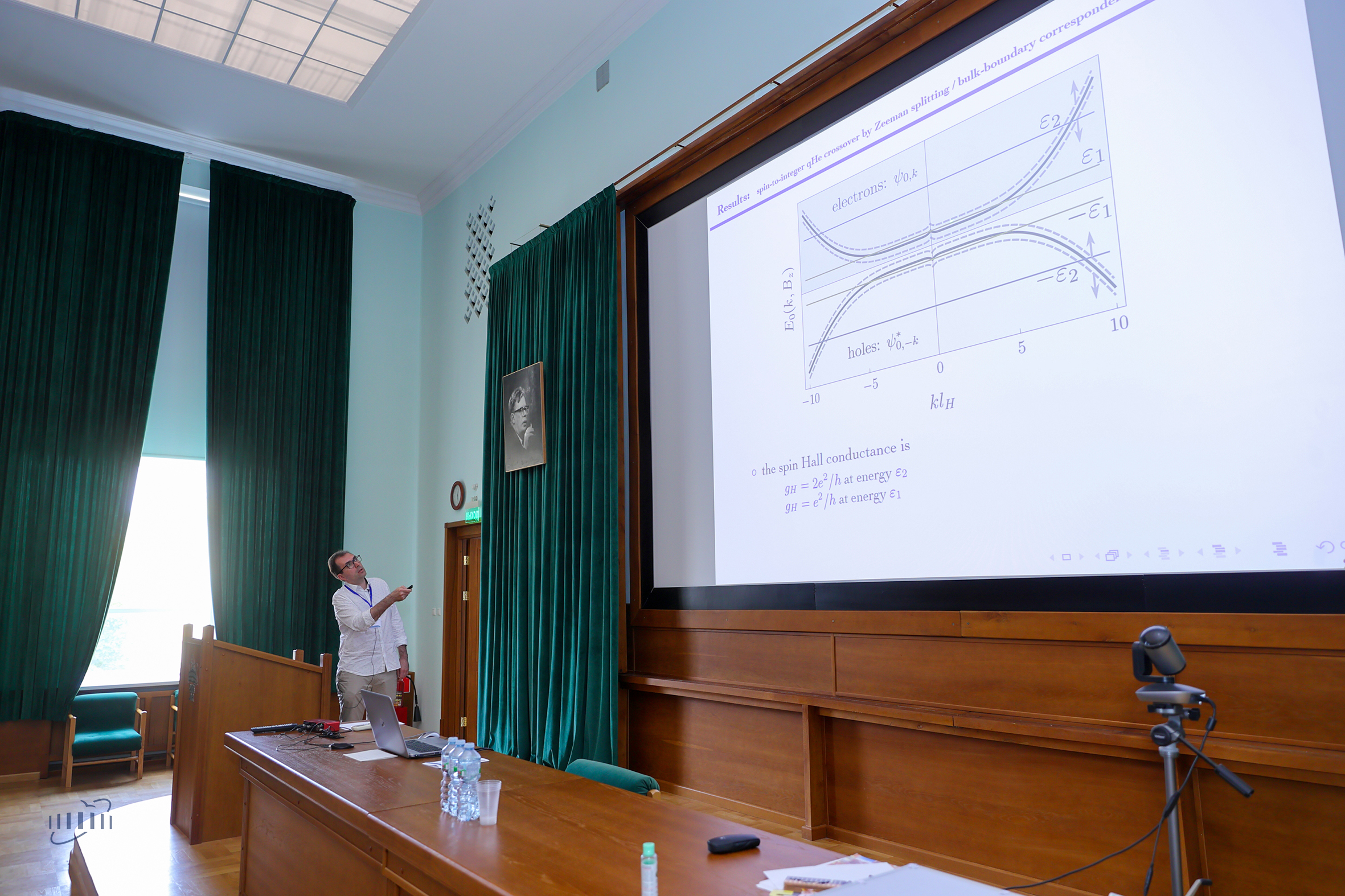 On the first day of the workshop, plenary presentations were given: “Full counting statistics for unconventional superconductor junctions” (Alexander Golubov, MIPT), “Bulk-edge correspondence at the spin-to-integer quantum Hall effect crossover in topological superconductors” (Igor Burmistrov, Landau Institute of Theoretical Physics, “Peculiarities of mutual influence of superconductivity and magnetism in Josephson structures with ferromagnet” (Yury Shukrinov, BLTP).
