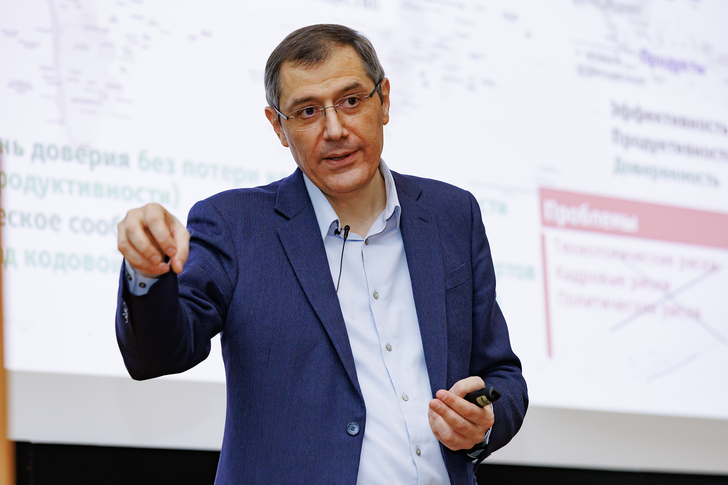 Academician Avetisyan noted that the development of the IT industry is proceeding rapidly, with the civilian sector heavily contributing in terms of innovation in the last 20 years. “It is important to understand that as the consumers of technology, we are the customers, too,” the speaker explained. Further growth of IT technologies is only possible in a collaborative economy, closely linked with the concept of open source code. The quality of any platform, regardless of its cost, depends on the number of participants. Whether we are talking about artificial intelligence or, for example, biometrics, it is essential that the product is high quality, i.e. it ensures efficiency, productivity, and security. In other words, it has to be trusted.