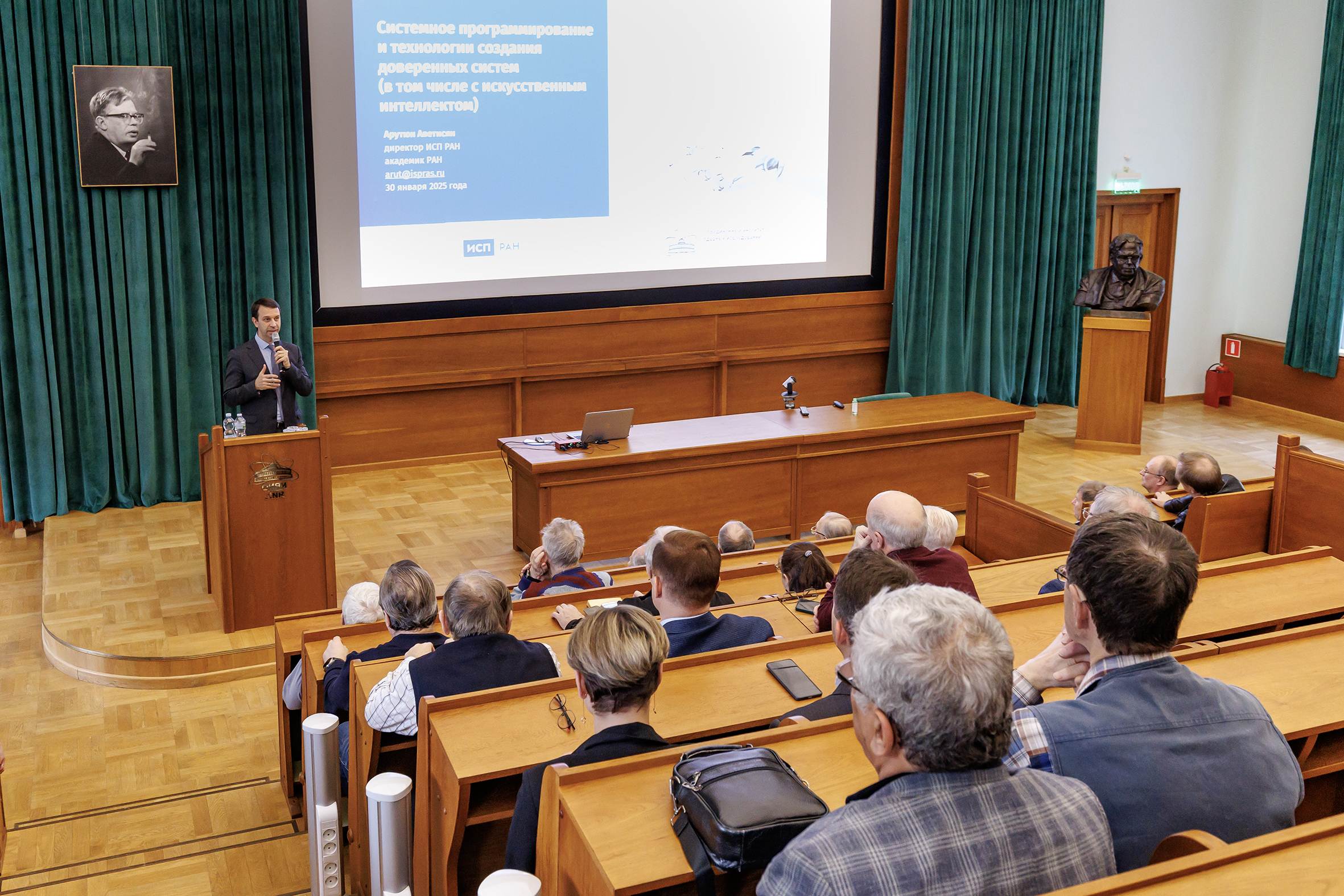 On 30 January, Director of the Ivannikov Institute for System Programming of the Russian Academy of Sciences (ISP RAS), RAS Academician Arutyun Avetisyan spoke at a Joint Institute Seminar in the Laboratory of Theoretical Physics at JINR. The talk provided plenty of relevant information about system programming and technologies for creating trusted computer systems, including those with artificial intelligence.