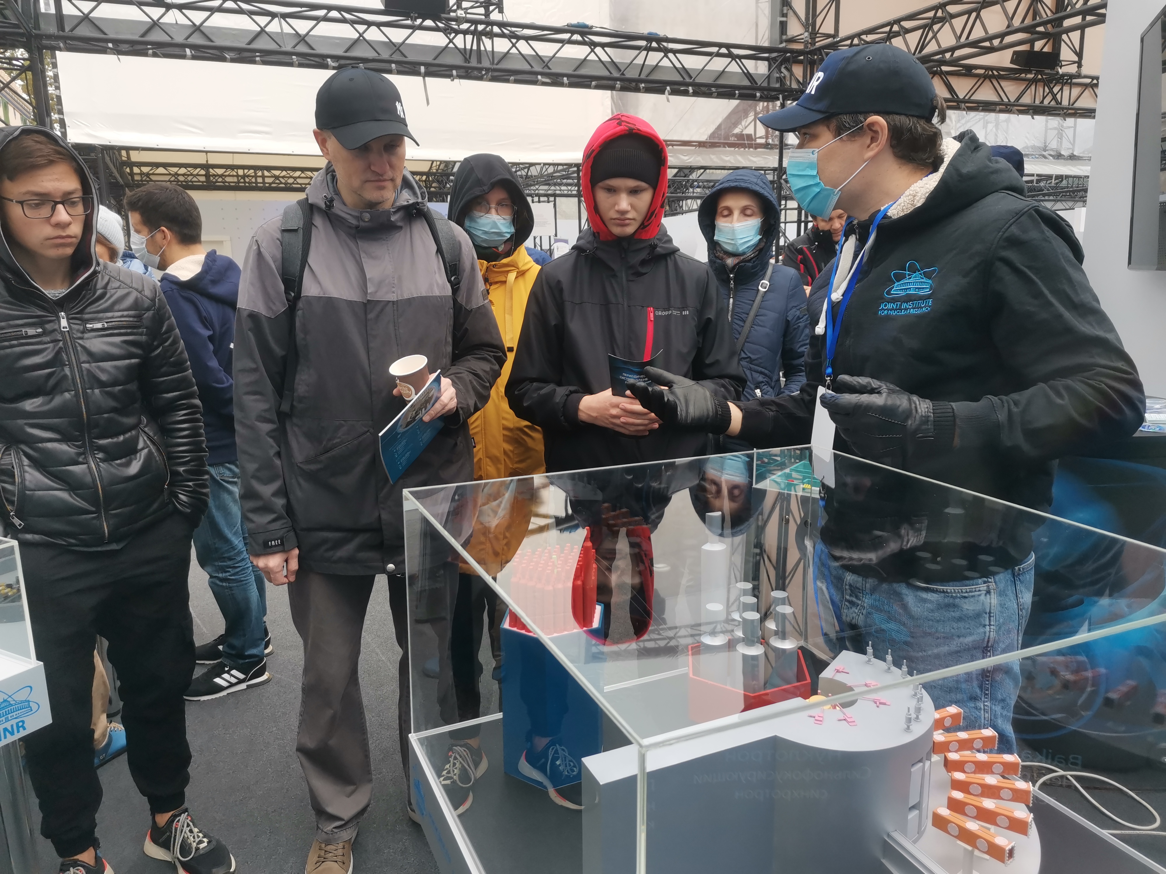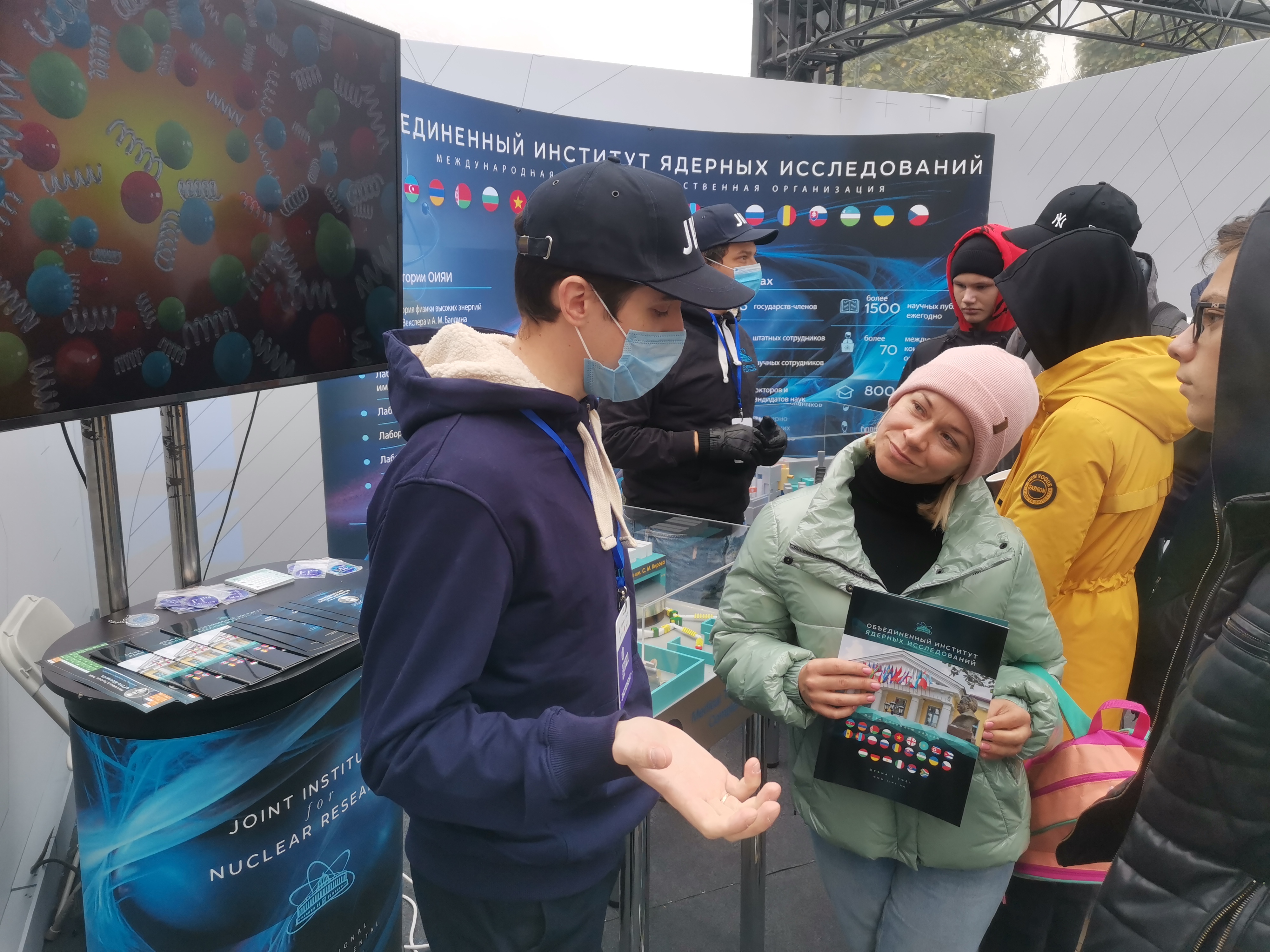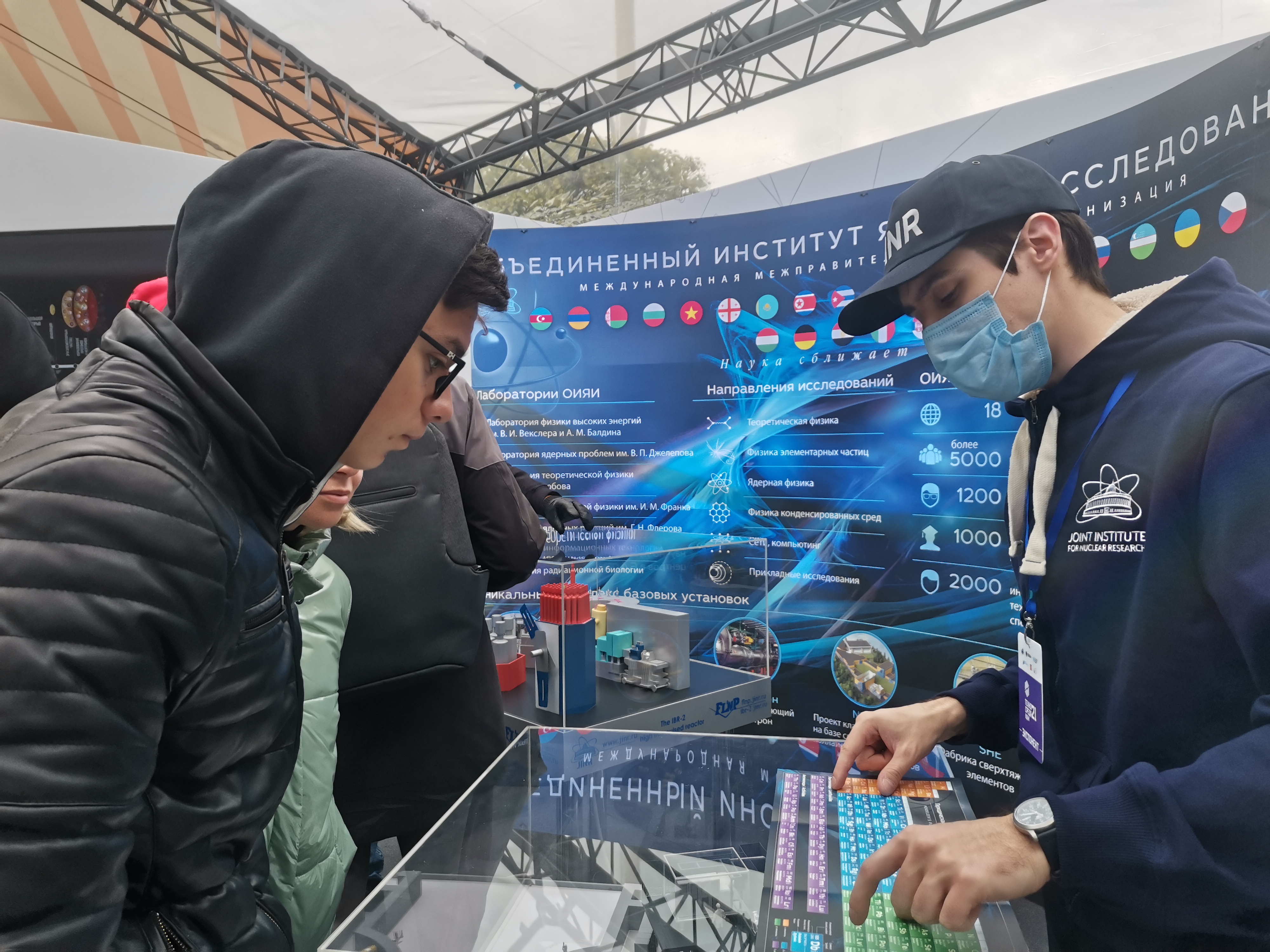 The JINR exhibition stand was installed in the Zone of Universities and Research Institutes of the Festival where visitors could get acquainted with the JINR projects and see the models of its basic facilities: the NICA complex, the Baikal-GVD deep-underwater neutrino telescope, the Superheavy Element Factory – the DC-280 cyclotron, Medical and Technical Complex, the IBR-2 pulsed reactor.