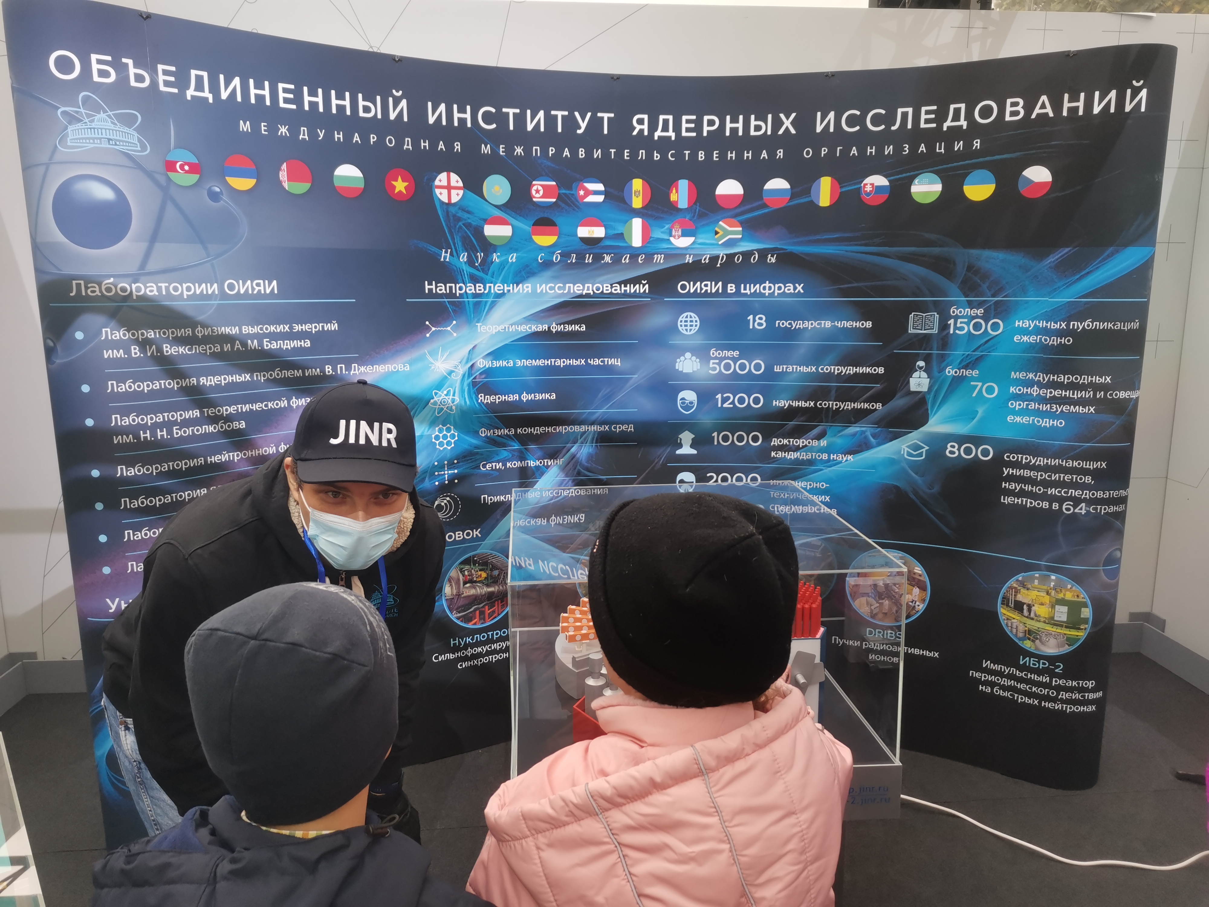 When telling one of the guests about the JINR Medical and Technical Complex, we found out that this guest used to be a patient at the Complex 15 years ago. It was a pleasure to find out that a former patient was not only alive and feeling well but also had a family and came to the JINR exhibition stand with his wife and child.