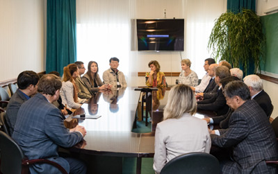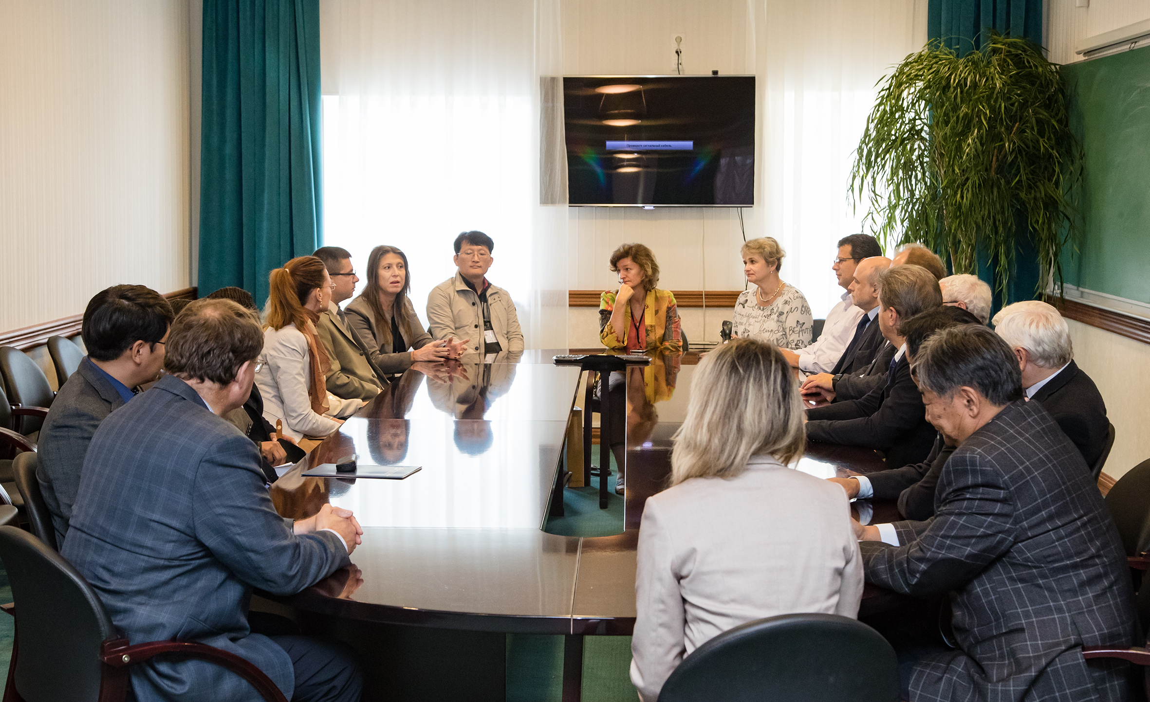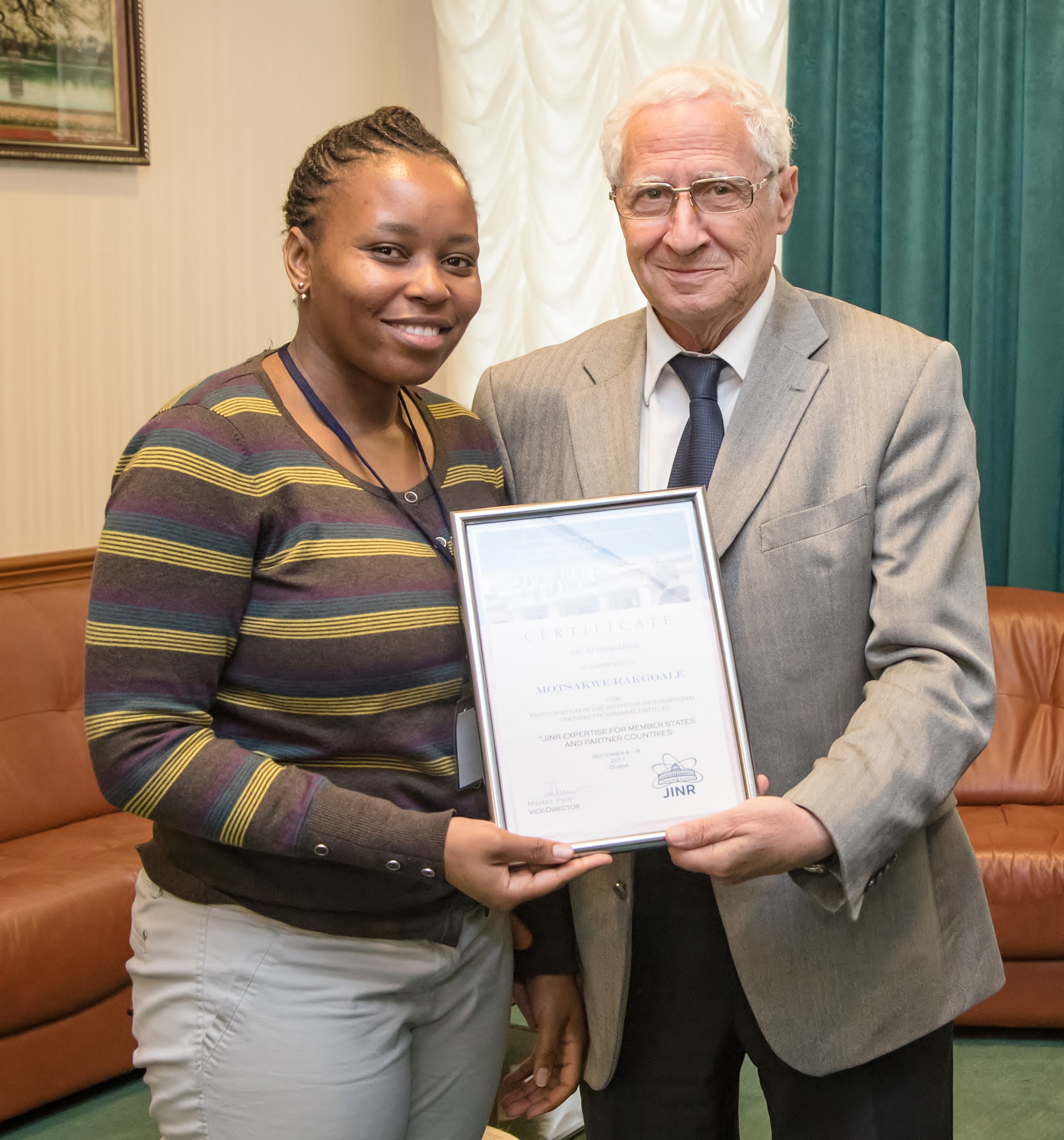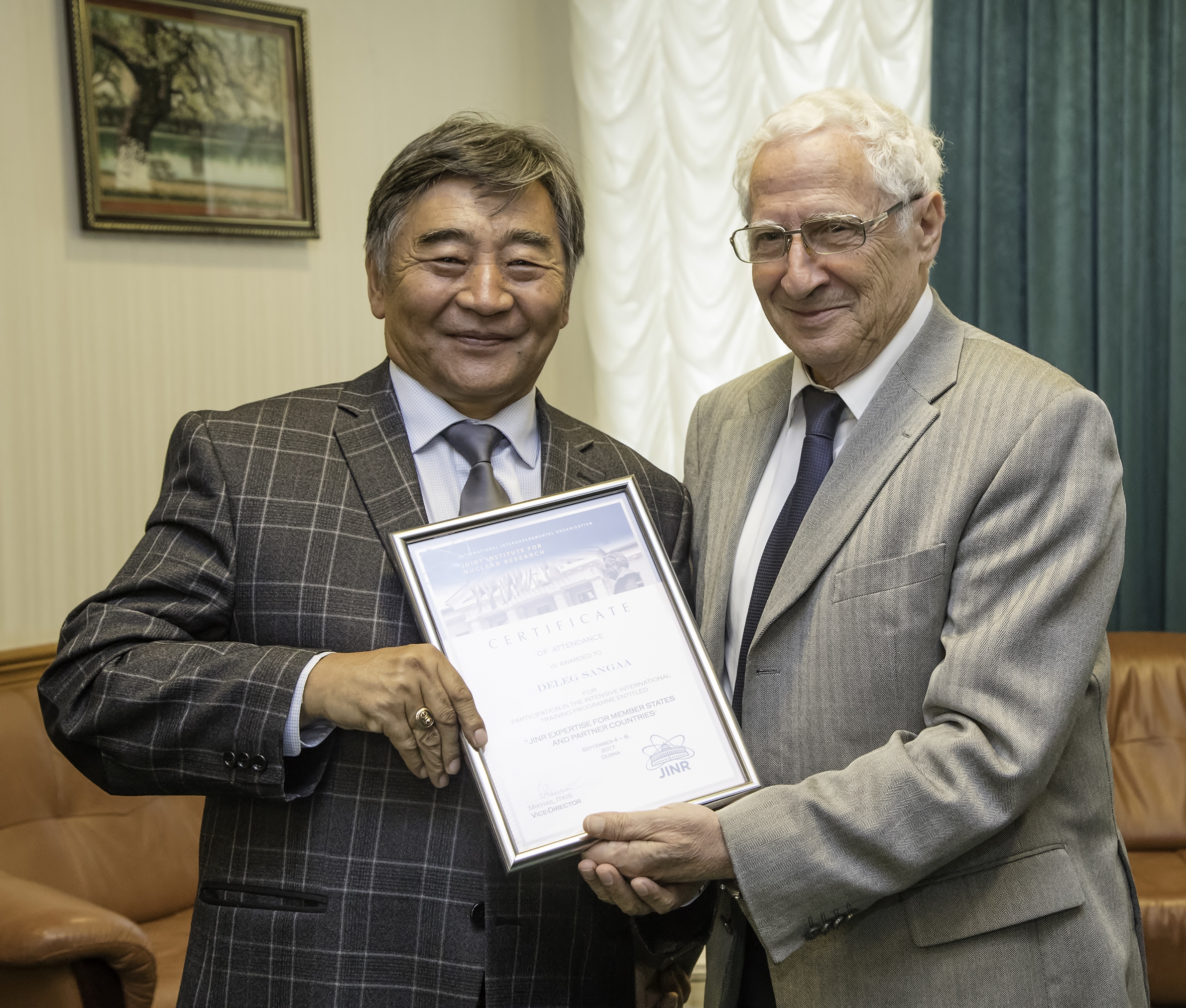 On the concluding day of the training programme, the participants gathered at the JINR Directorate for a round table, where the leadership of the Institute was represented by JINR Vice-Directors Mikhail Itkis and Richard Lednický, JINR Chief Scientific Secretary Alexander Sorin, Advisor to the JINR Directorate Marina Tumanova, Head of JINR University Centre Stanislav Pakuliak and Head of the JINR International Cooperation Department Dmitry Kamanin, who moderated the meeting. The parties discussed the training programme and the meeting was finished with the presentation of diplomas to participants of the training.