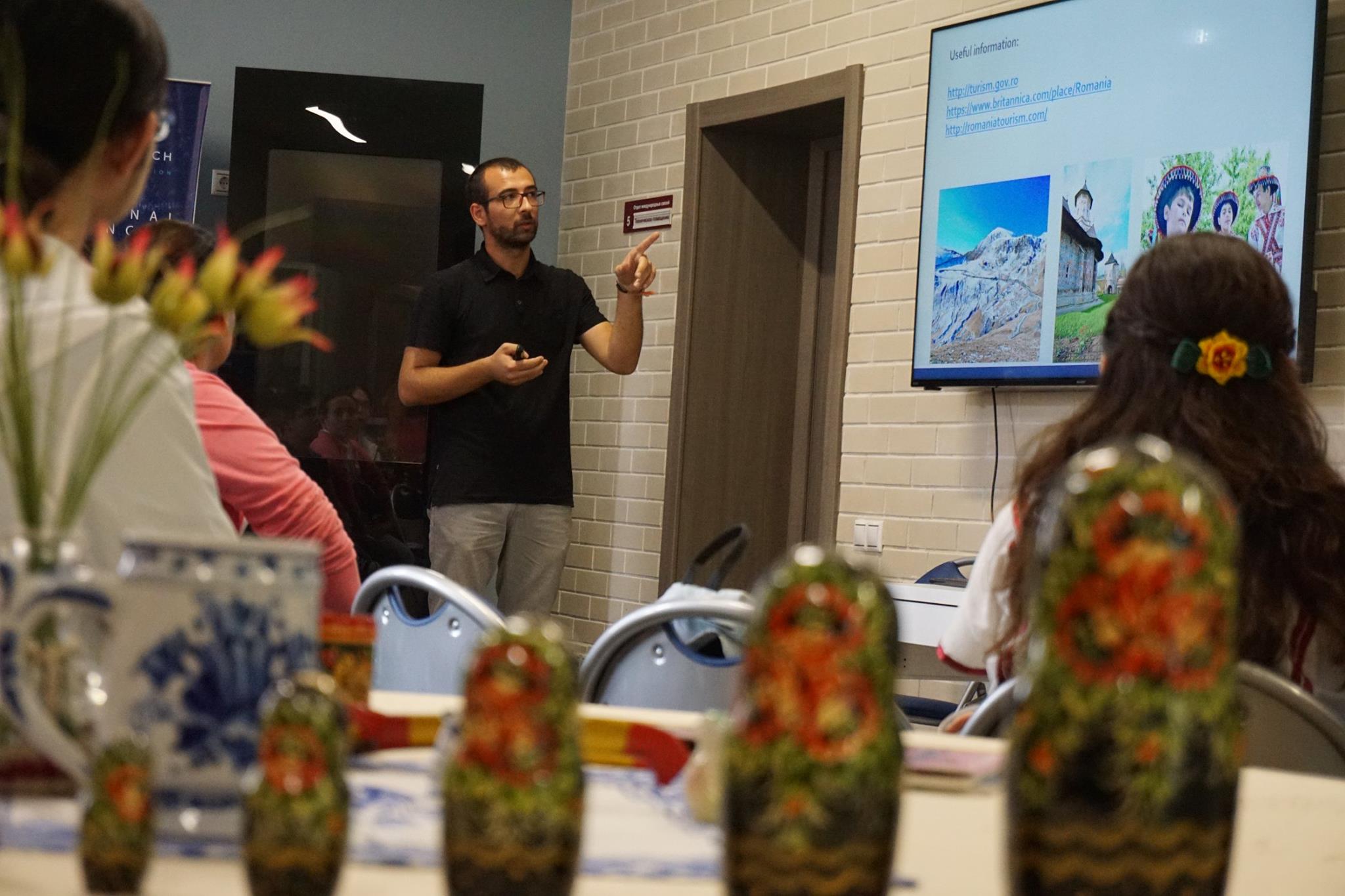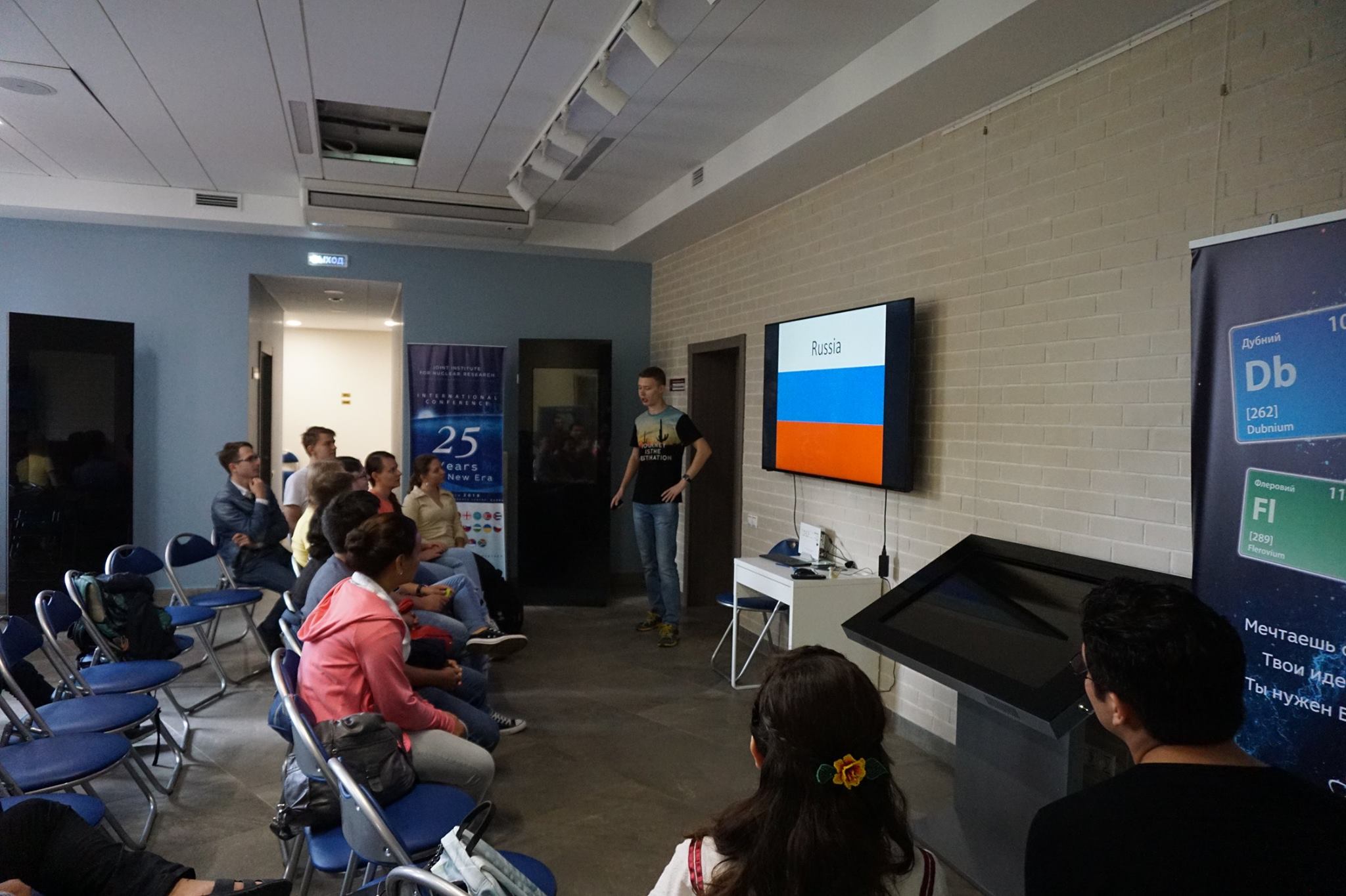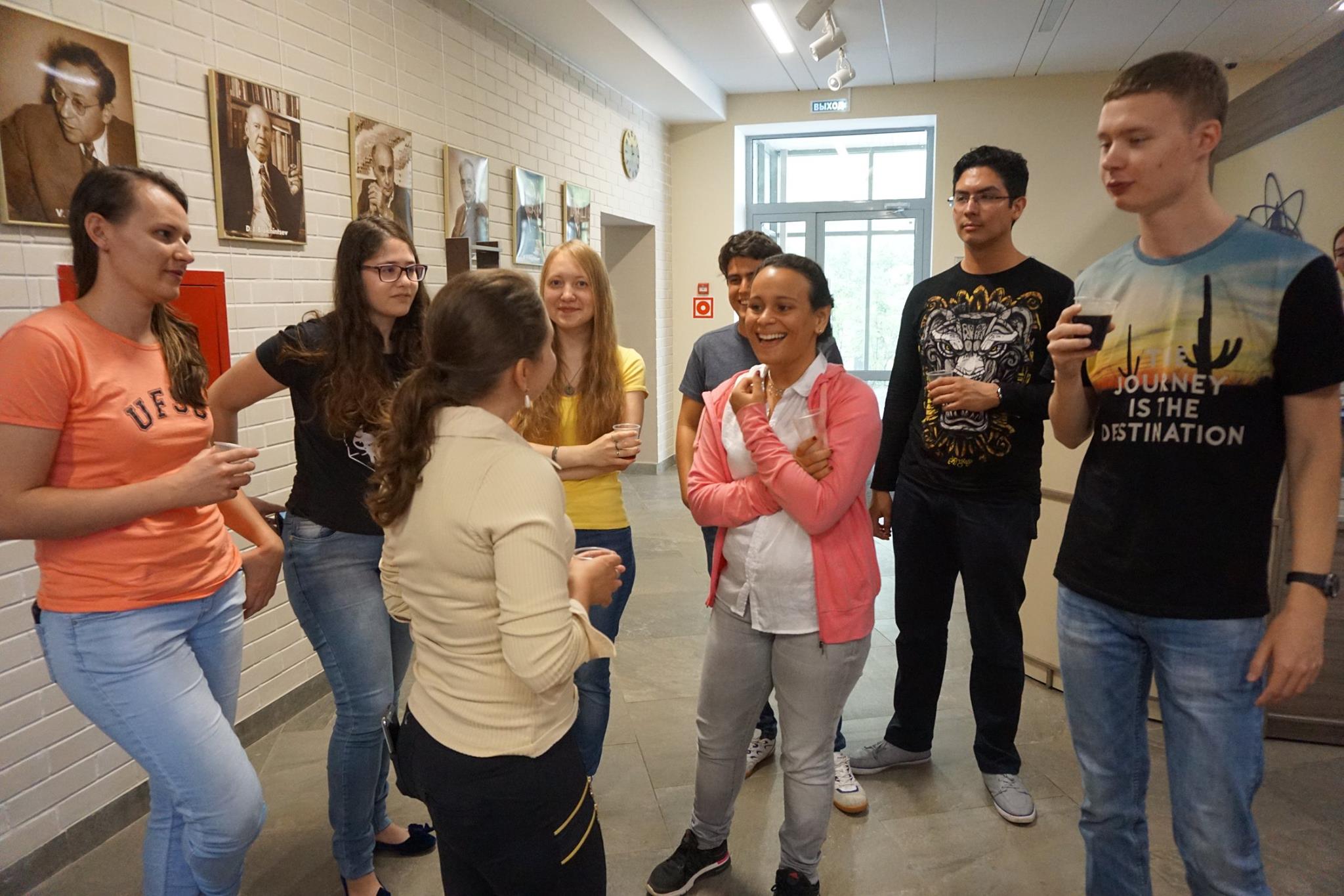 In the informal atmosphere of the “International morning”, students had an opportunity to tell the SSP participants about culture of their countries, share interesting facts about history and peculiarities of national character as well as get to know each other closer. This regular event for SSP participants was held on 20 July 2018 in the JINR Visit Centre. Ten presentations on countries from which speakers came were delivered to the audience. Moreover, organizers prepared a surprise for participants. At the improvised mini-exhibition, they presented items of traditional Russian applied arts: Gzhel and Khokhloma ware, a family of matryoshka dolls, clay whistles and even a real balalaika. During the break between presentations, degustation of kvass was arranged, which was appreciated by many participants.