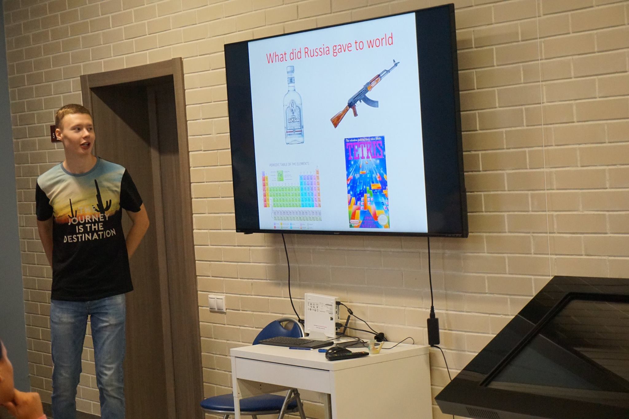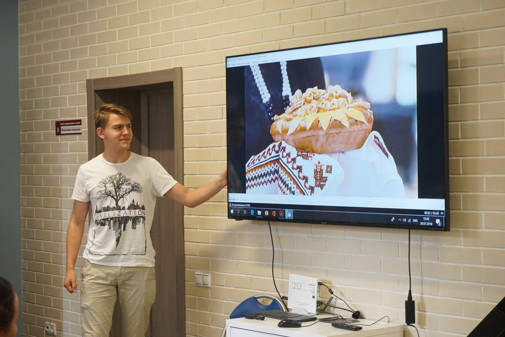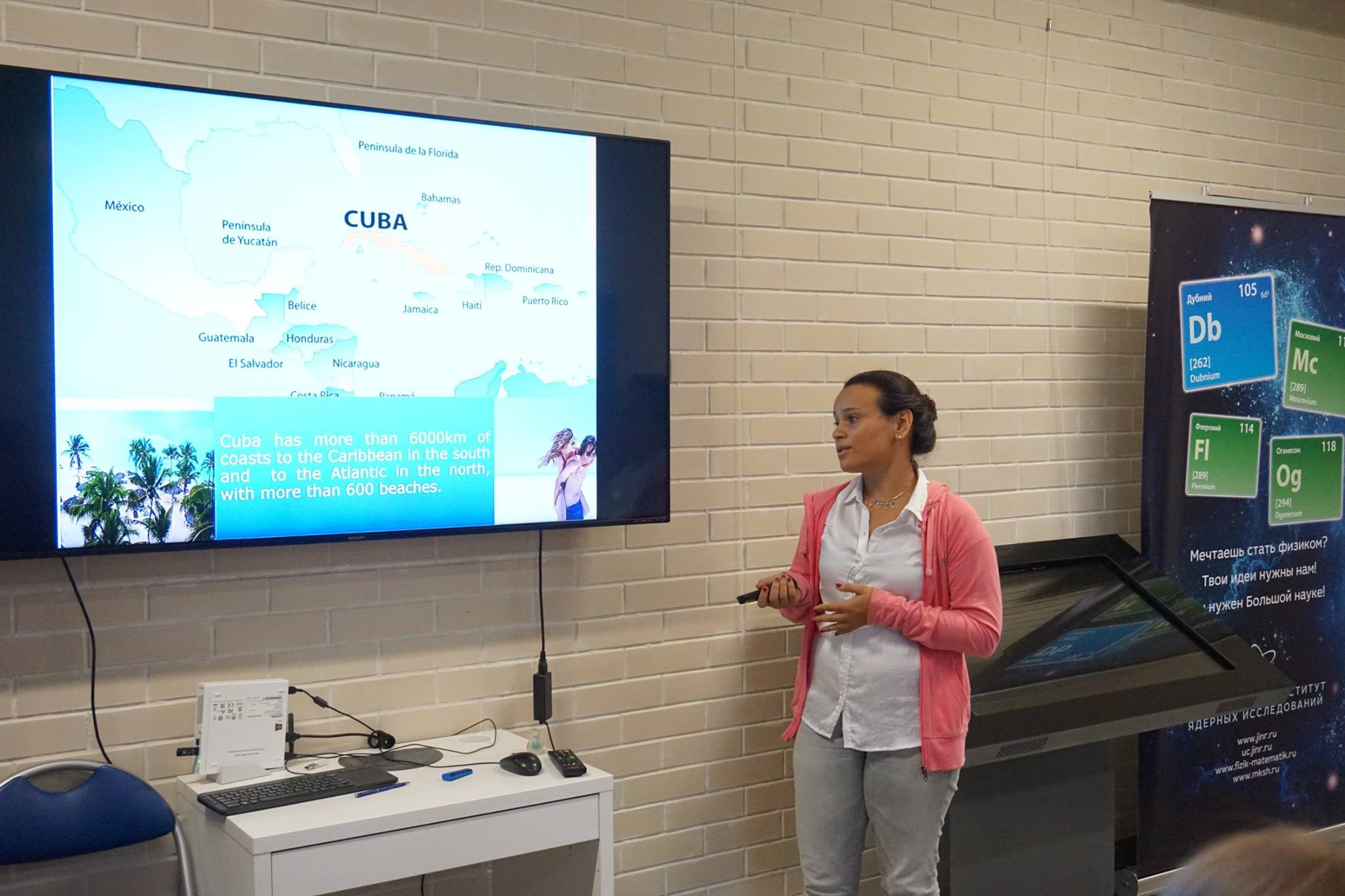 In the informal atmosphere of the “International morning”, students had an opportunity to tell the SSP participants about culture of their countries, share interesting facts about history and peculiarities of national character as well as get to know each other closer. This regular event for SSP participants was held on 20 July 2018 in the JINR Visit Centre. Ten presentations on countries from which speakers came were delivered to the audience. Moreover, organizers prepared a surprise for participants. At the improvised mini-exhibition, they presented items of traditional Russian applied arts: Gzhel and Khokhloma ware, a family of matryoshka dolls, clay whistles and even a real balalaika. During the break between presentations, degustation of kvass was arranged, which was appreciated by many participants.