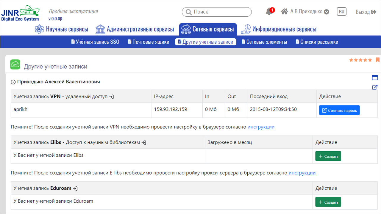 – Мы проработали архитектуру экосистемы, приведя к общему стандарту те системы, которые уже работали. В первую очередь сетевые сервисы. Раньше надо было по каждому случаю идти в сетевую службу. Теперь пользователь сможет поменять пароли, создать новый VPN, подписаться на рассылки, зарегистрировать свой компьютер онлайн. В некоторых сервисах пользователь получает ответ на запрос после модерации.