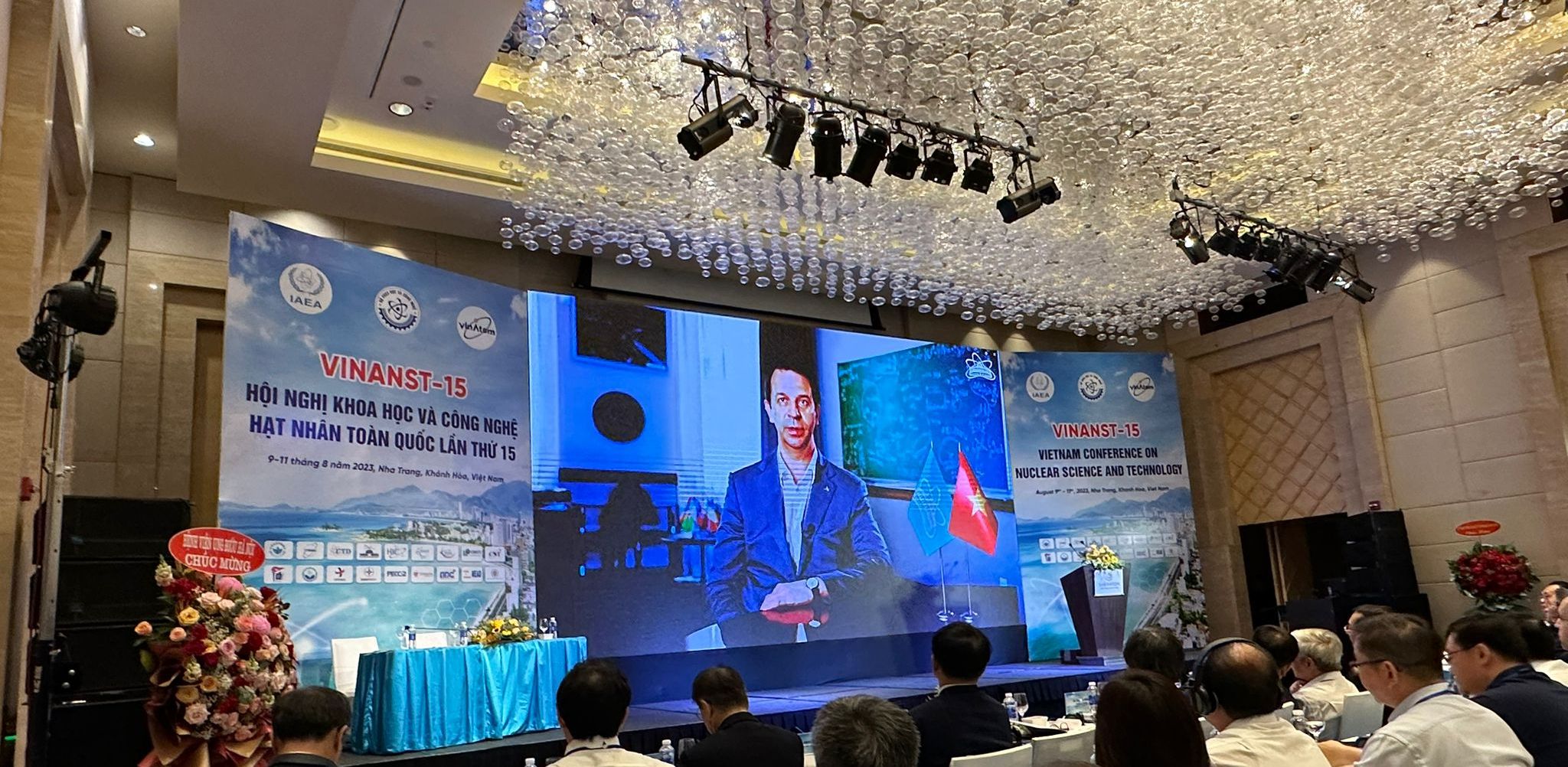 9 – 11 августа в Нячанге (Вьетнам) делегация ОИЯИ приняла участие в 15-й Вьетнамской конференции по ядерной физике и технологиям (VINANST-15), организованной Институтом атомной энергии Вьетнама (VINATOM) совместно с Департаментом науки и технологий вьетнамской провинции Кханьхоа. На церемонии открытия прозвучало приветственное обращение директора ОИЯИ академика РАН Григория Трубникова.