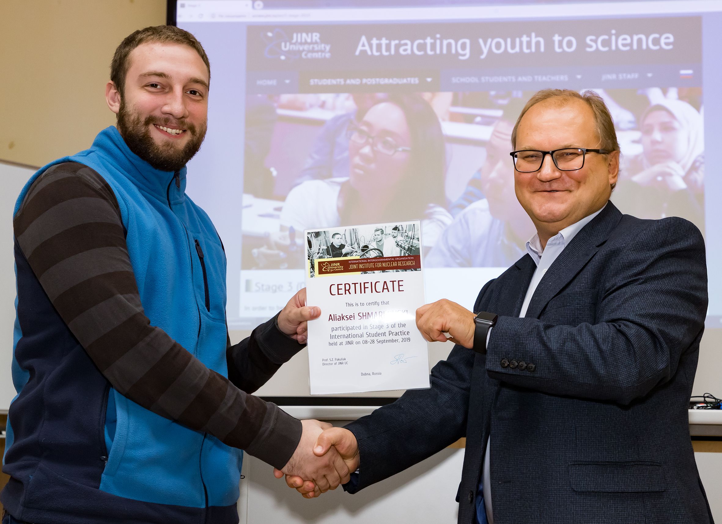27 сентября в Учебно-научном центре ОИЯИ защитой учебных исследовательских проектов завершился третий этап международной студенческой практики. В нем участвовали студенты старших курсов и аспиранты первого года обучения университетов Беларуси, Кубы, Сербии, Чили и ЮАР. Как обычно, программа практики содержала лекции ведущих специалистов лабораторий Института, экскурсии на базовые установки ОИЯИ, знакомство с историей России и достопримечательностями Москвы. А большую часть времени студенты были заняты работой над проектами, разработанными сотрудниками УНЦ, ЛНФ, ЛИТ, ЛТФ, ЛЯП, ЛРБ и ЛЯР.
