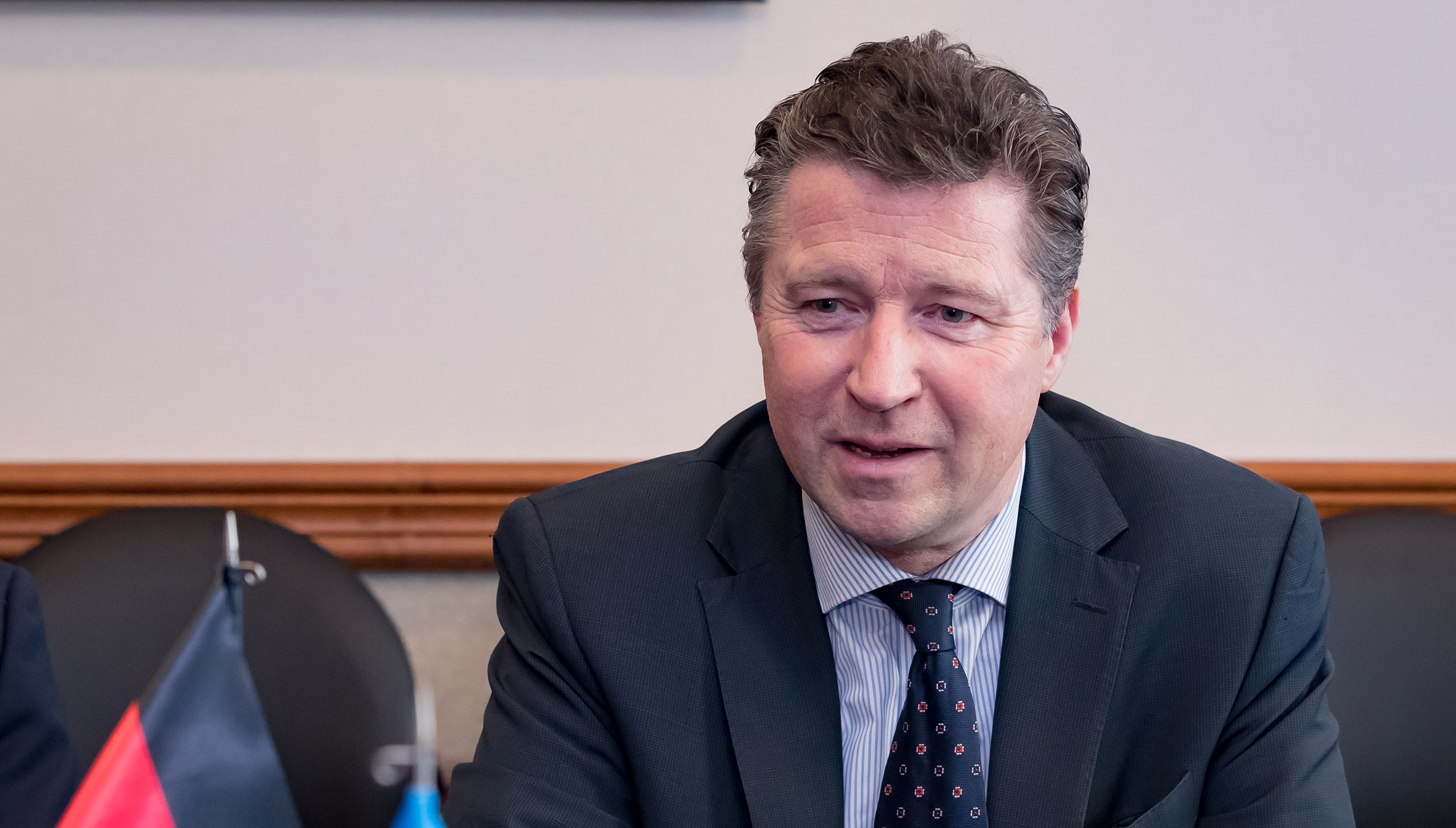 Приветствуя г-на Гезу Андреаса фон Гайра, директор ОИЯИ Григорий Трубников отметил давнюю и плодотворную историю сотрудничества ОИЯИ с германскими научными центрами, а также активное участие германских ученых в научной деятельности Объединенного института. «ОИЯИ рад принимать высокопоставленную делегацию германской стороны в ОИЯИ. Германия, будучи одной из стран-основательниц Объединенного института ядерных исследований, является сегодня одним из стратегических партнеров нашей международной организации. Мы высоко ценим участие Германии как «научно-технологического тяжеловеса» во всех флагманских международных проектах нашего Института. Полагаем, что уровню кооперации научных коллективов ОИЯИ и Германии, с нашей точки зрения, соответствовал бы статус члена нашей международной организации. Уверен, что наше динамично развивающееся сотрудничество приблизит такое взаимовыгодное решение в последующие годы», — сказал академик Трубников.