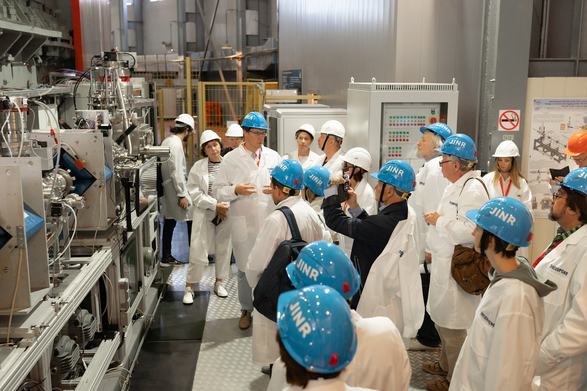 В заключительный день работы совещания участники посетили ускорительный комплекс NICA. Они осмотрели здание синхрофазотрона, где на выводе из инжекционного комплекса располагается Станция облучения чипов, посетили зал MPD и 205 корпус, в котором находятся Станция длительного облучения, располагаемая в зоне установки BM@N, а также участок пробоподготовки.