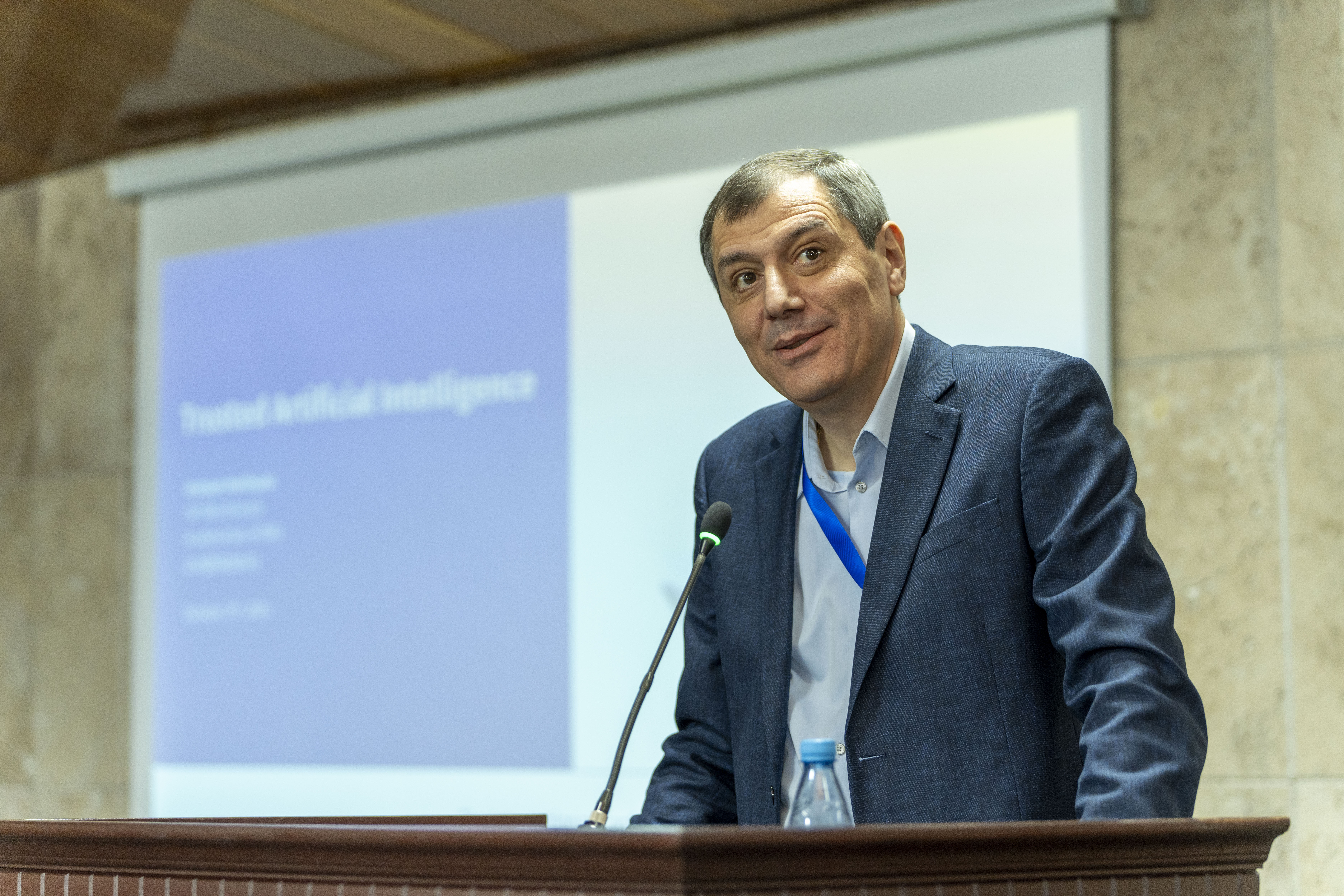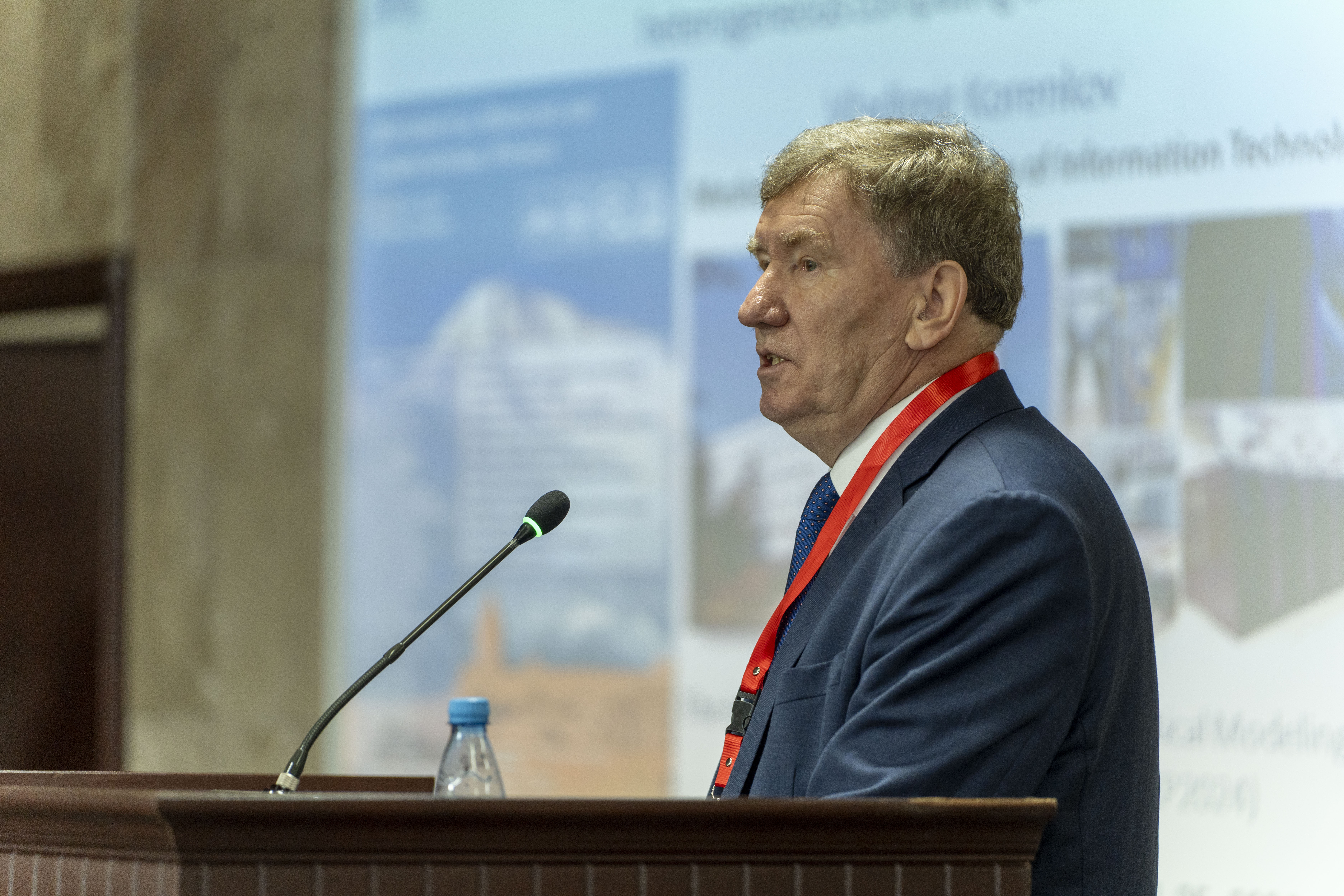 Работу конференции открыли пленарные доклады проректора Ереванского госуниверситета по точным и естественным специальностям Рафаэля Бархударяна, представившего научную программу вуза, и научного руководителя ЛИТ ОИЯИ Владимира Коренькова, рассказавшего о методах и технологиях обработки данных в гетерогенных вычислительных средах. Директор Института системного программирования РАН академик Арутюн Аветисян сделал сообщение о доверенном искусственном интеллекте. Доклад главного инженера Института проблем информатики и автоматизации НАН РА Арташеса Мирзояна был посвящен возможностям Армянского национального суперкомпьютерного центра.