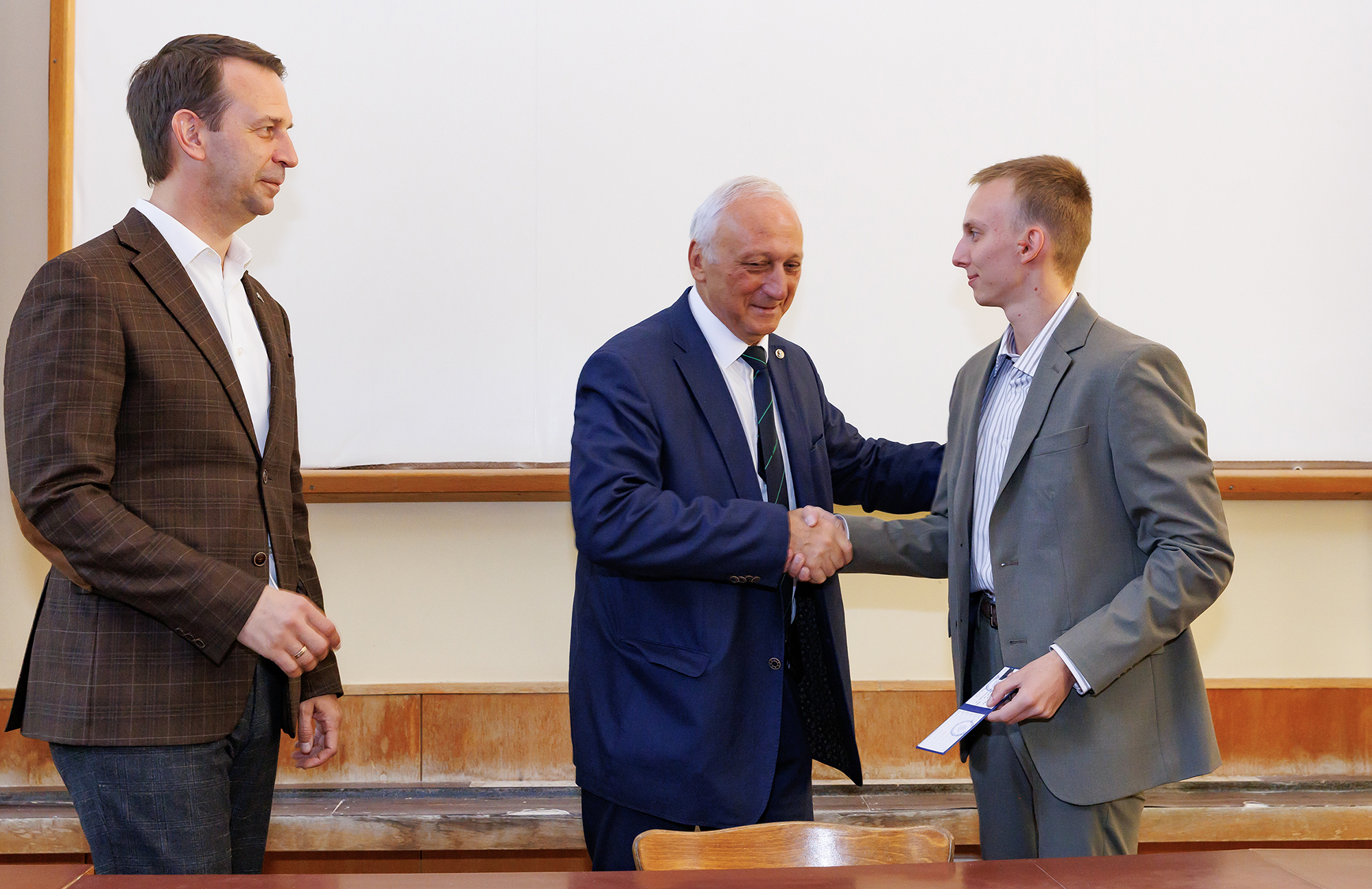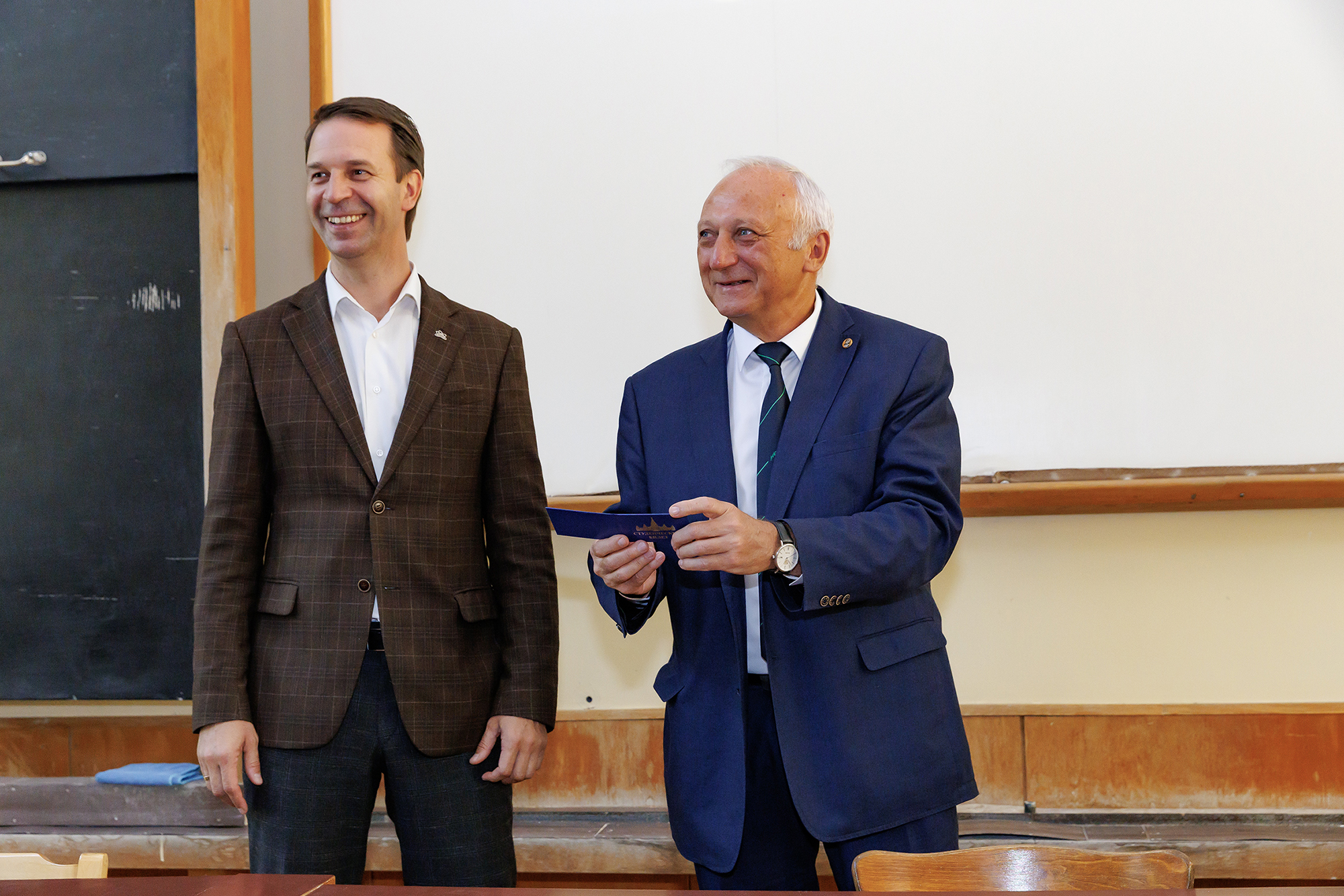 По завершении выступлений Григорий Трубников, Эдуард Боос и Александр Ольшевский провели торжественную церемонию вручения студенческих билетов магистрантам первого года обучения. Для знакомства с научной инфраструктурой Объединенного института для всех студентов и преподавателей была организована экскурсия в Лабораторию физики высоких энергий ОИЯИ, где они посетили площадку ускорительного комплекса NICA.